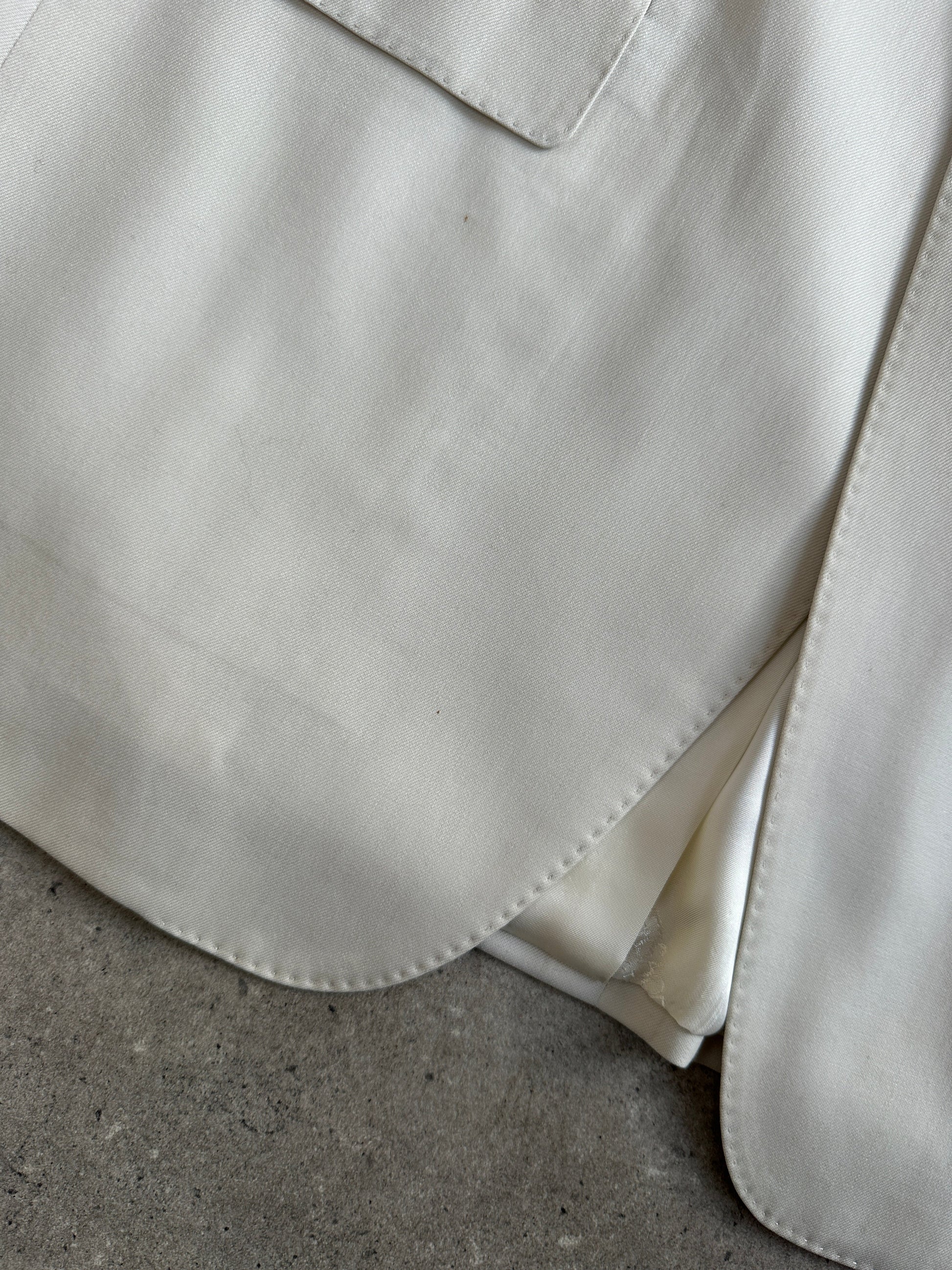 Vintage off white Versace Collection suit featuring a sharp peak lapel blazer and straight leg trousers. Cut from luxurious Super 100’s wool with a clean, elegant drape and finished with subtle tonal detailing.