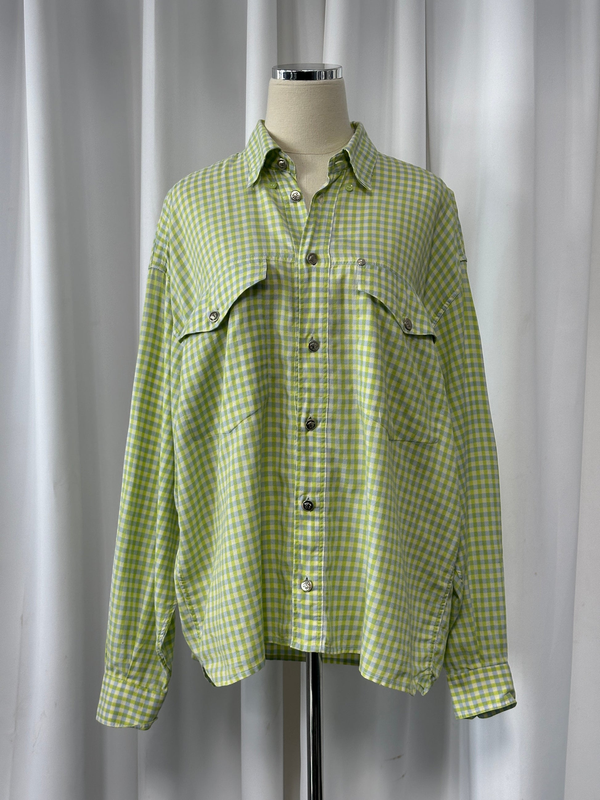 Vintage gingham lime Versace Jeans Couture shirt with bespoke buttons in boxy silhouette