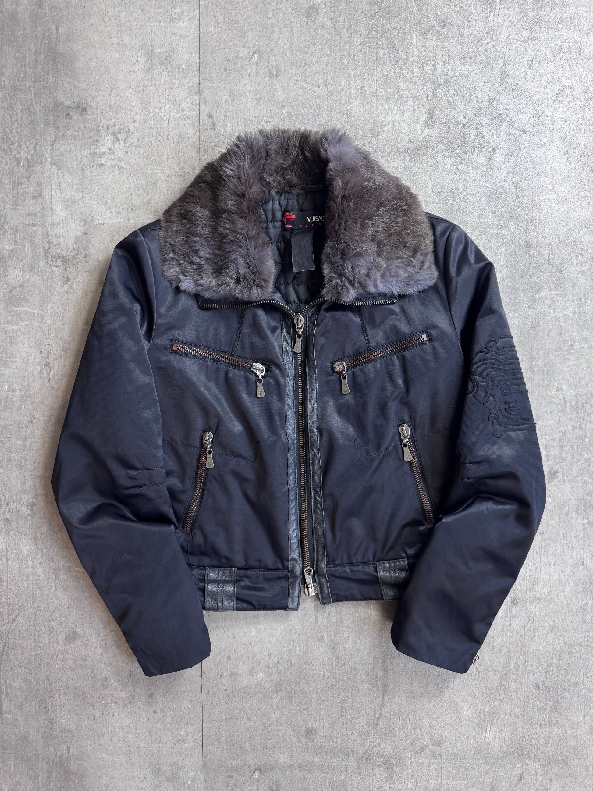 Versace Sport Cropped Fur Collar Black Utility Blouson