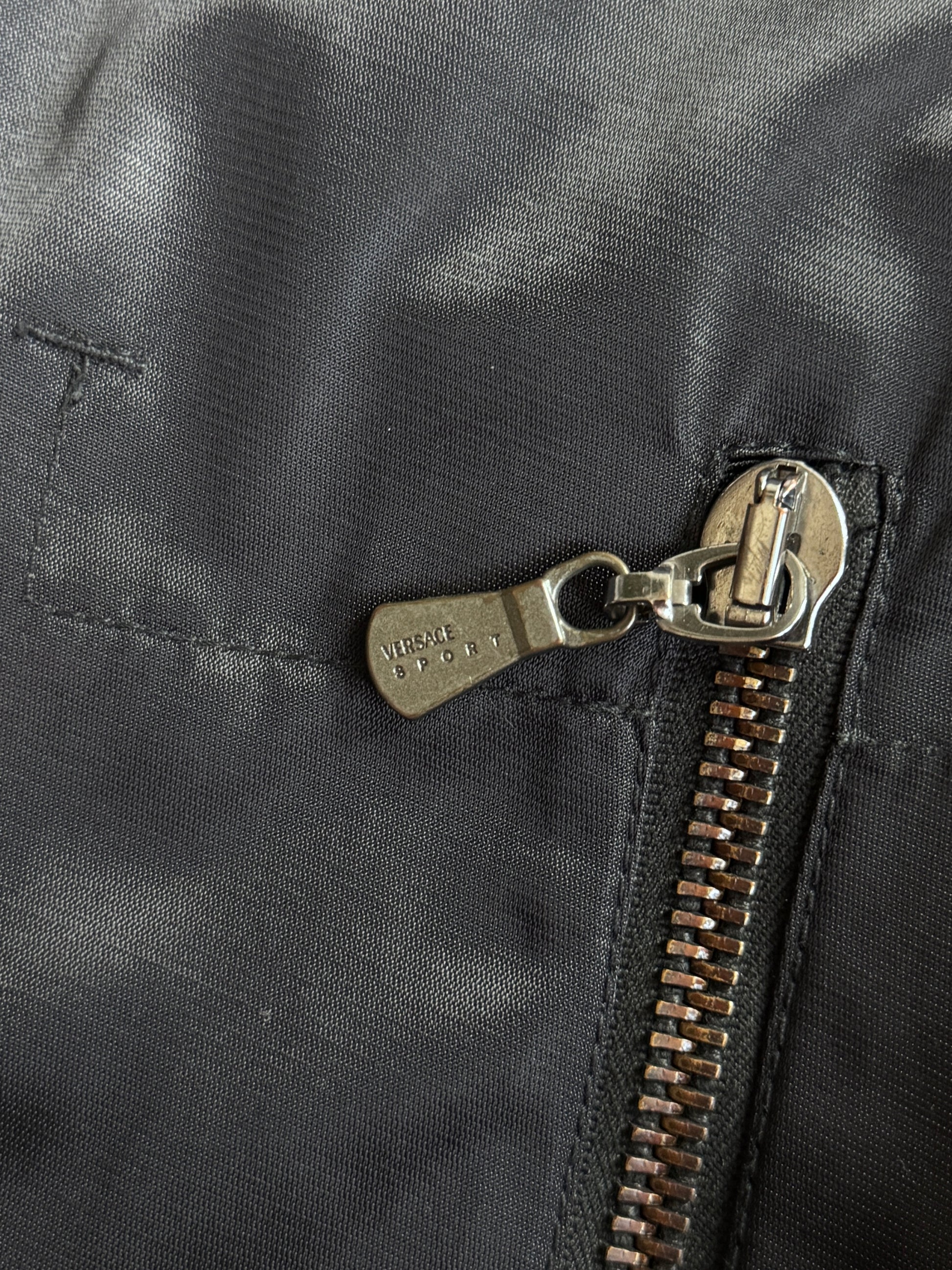 This Versace Sport Cropped Fur Collar Blouson perfectly captures late-90s Versace glamour reimagined through a utility lens. Crafted in jet black nylon with a sumptuous faux fur collar, this cropped bomber-style jacket features multiple zipped pockets, matte hardware, and embossed tonal detailing at the sleeve — a subtle nod to the house’s opulent aesthetic. Balancing luxury and edge, this jacket fuses functionality with unmistakable Versace attitude, ideal for transitional layering or as a bold street-luxe statement.