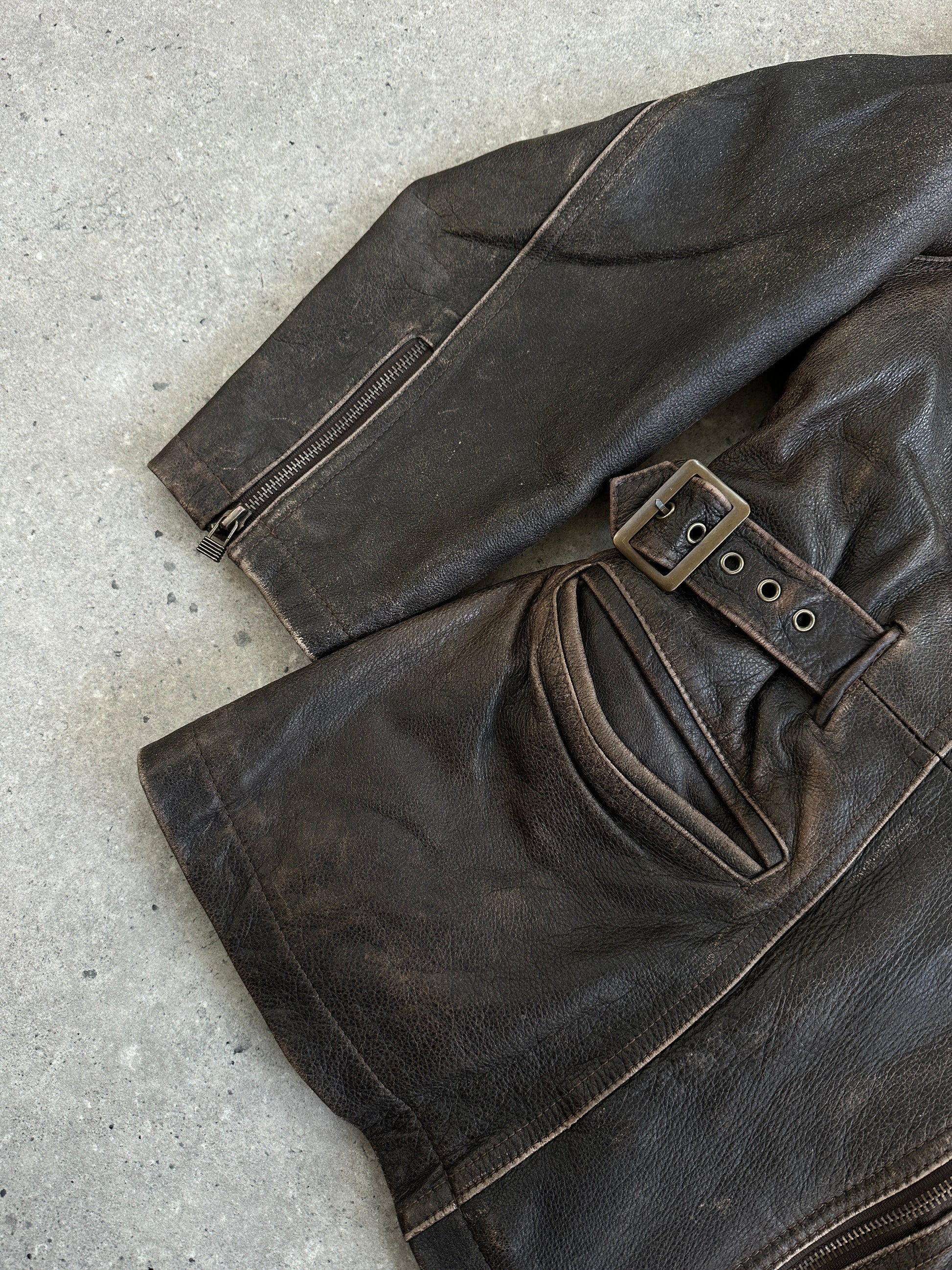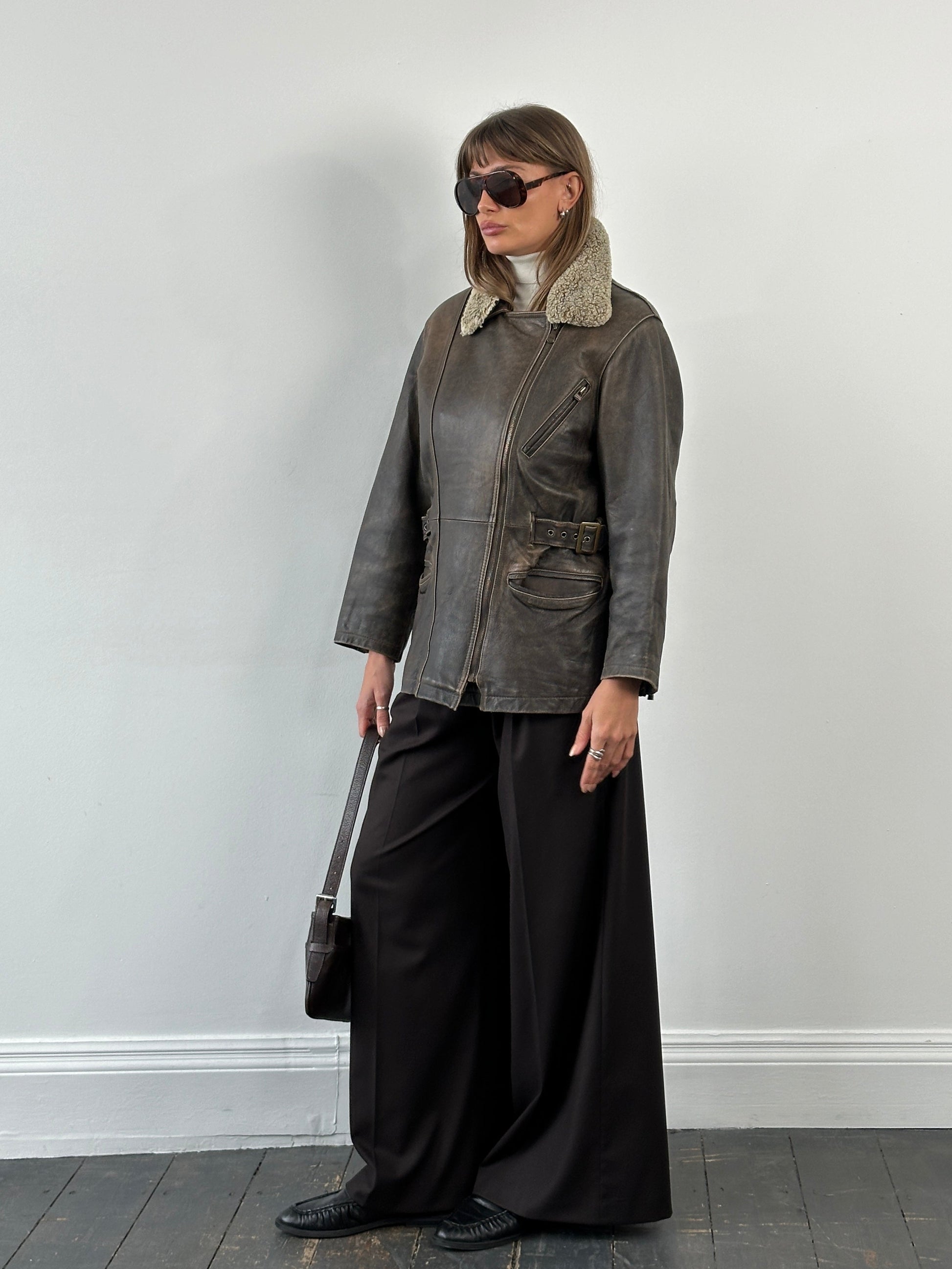Vintage 1990s Aged Aviator Leather Jacket - M