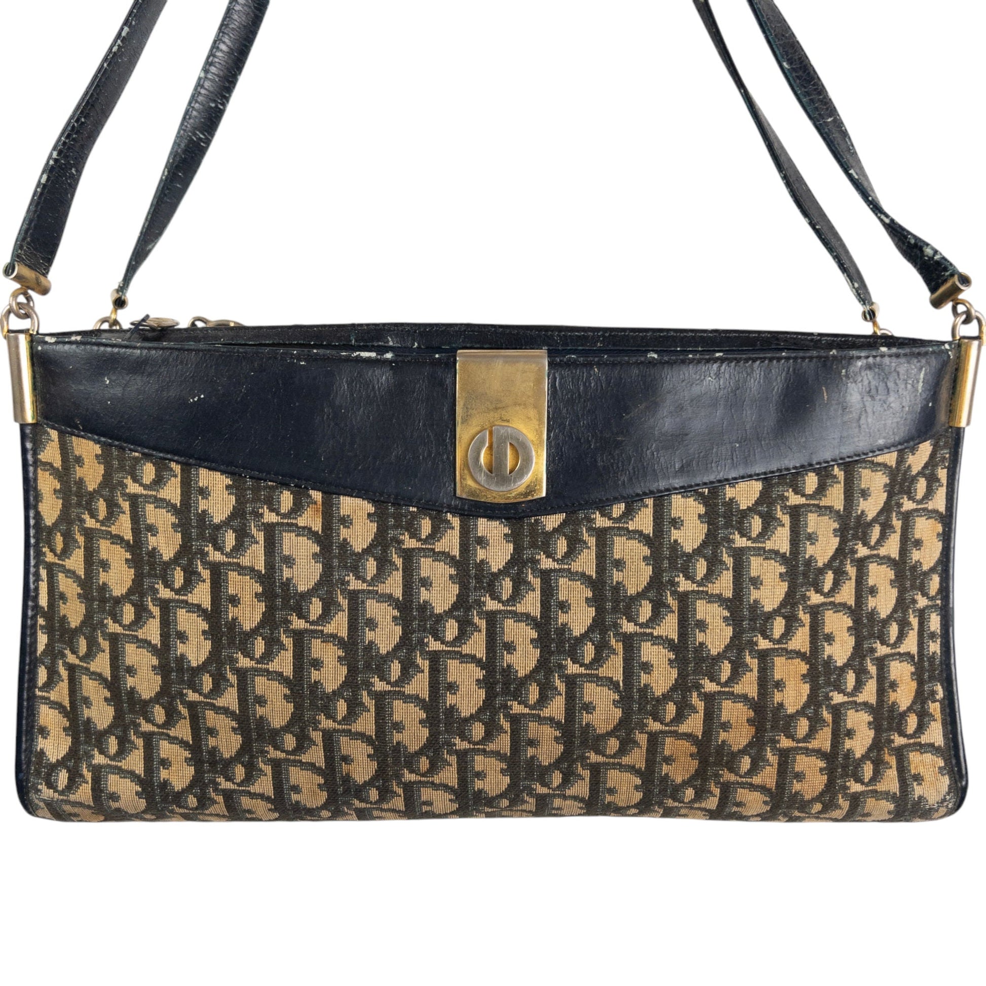 • Other info: Navy colour, beige contrast colour, monogram logo pattern, gold logo zips and details, triple compartment design, marks and wear as seen