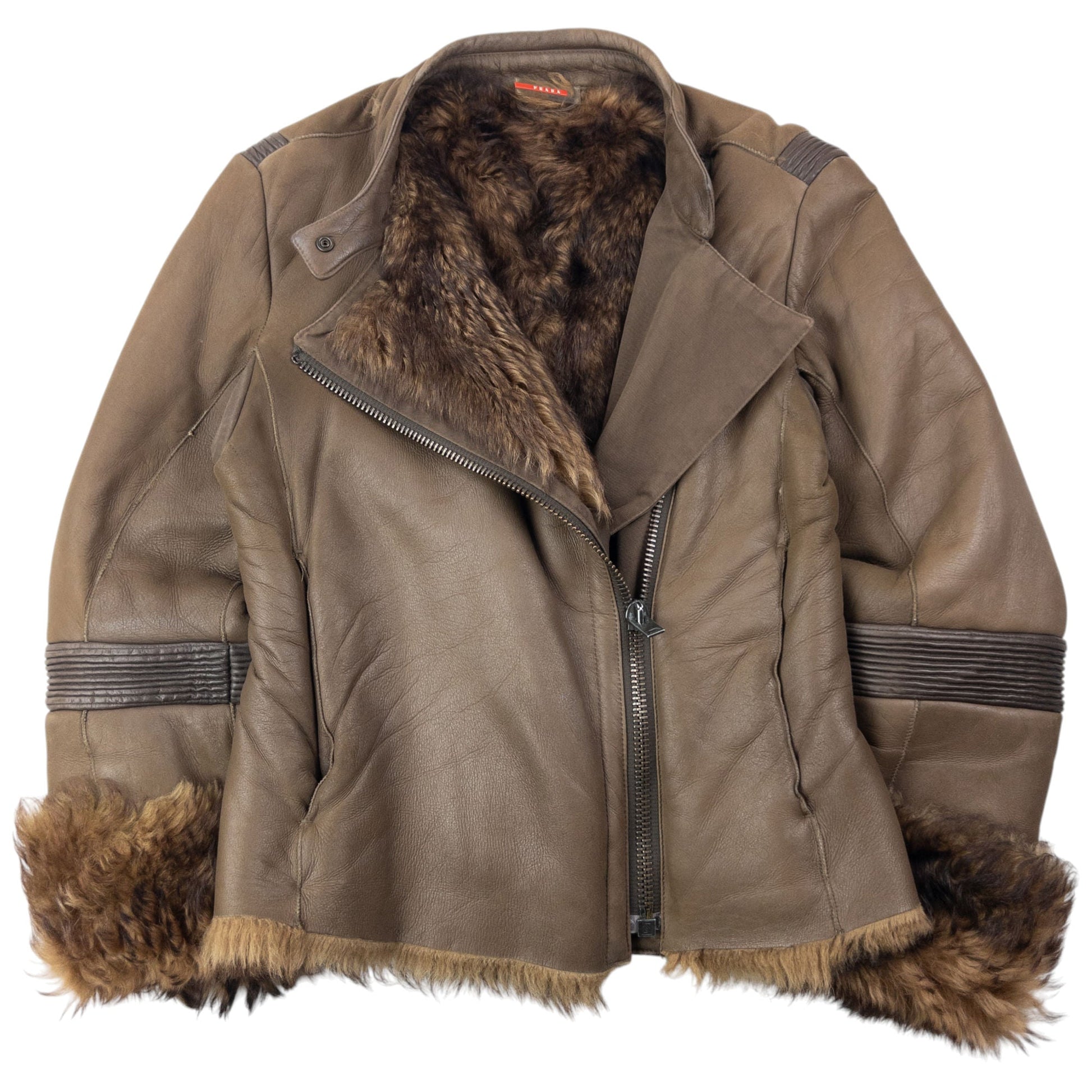 Vintage 2000s Prada Sport Sheep Fur Lined Leather Jacket Womens Size M | Medium, Brown