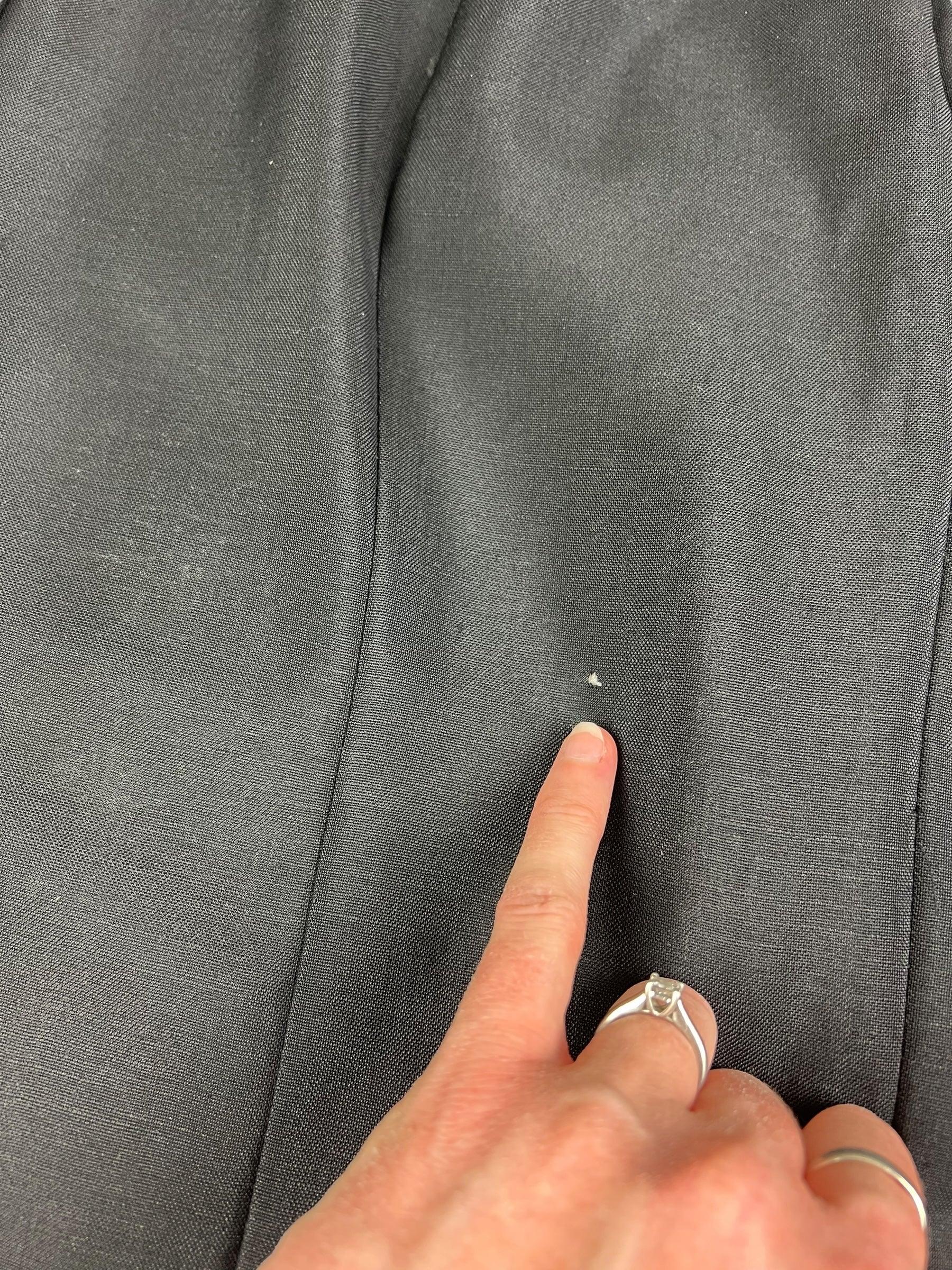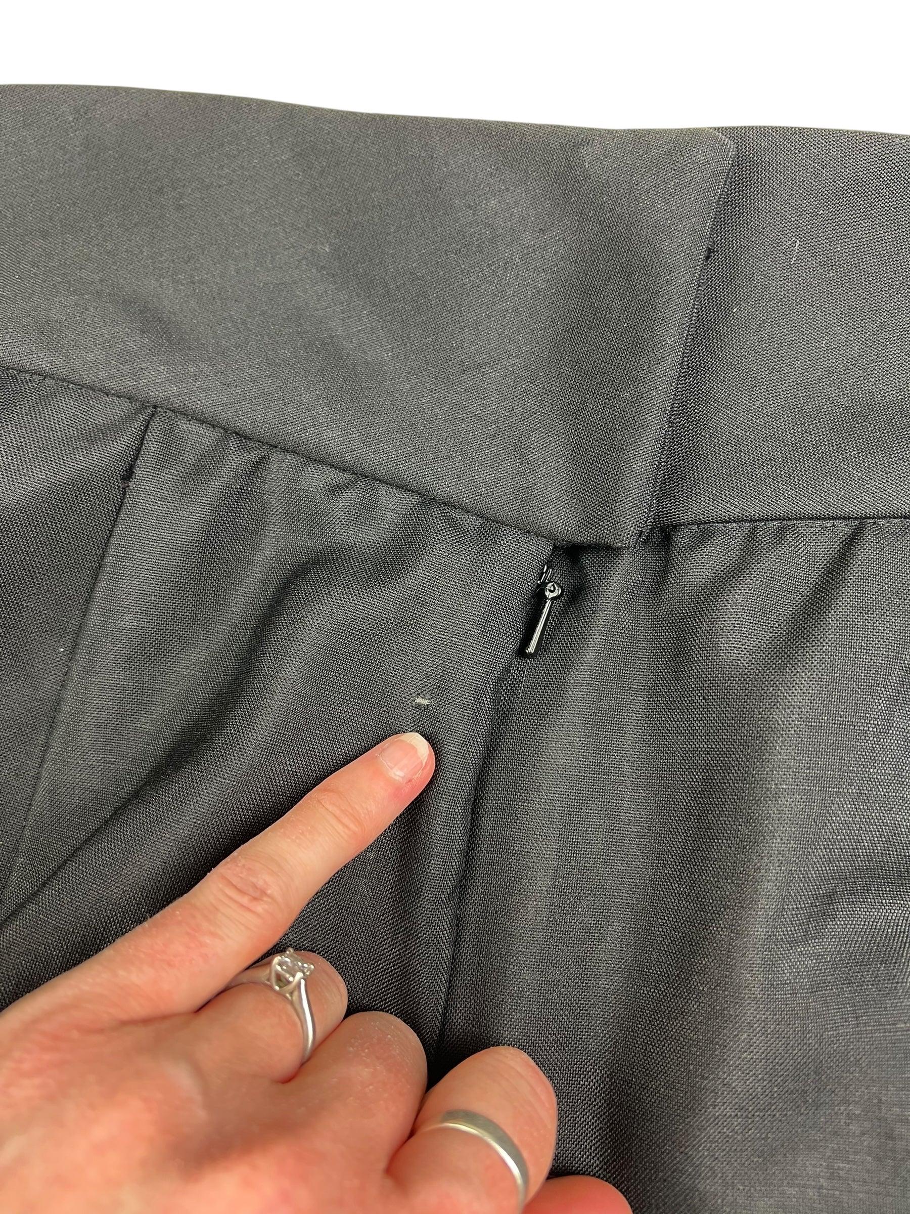 🐥 Condition is good overall with minor faults. New with tags and unworn - no odour. A tiny mark near zip. SI’d tiny pin sized holes as shown but not really visible when worn. Zip and hook fastenings secure and functional. Dry clean.