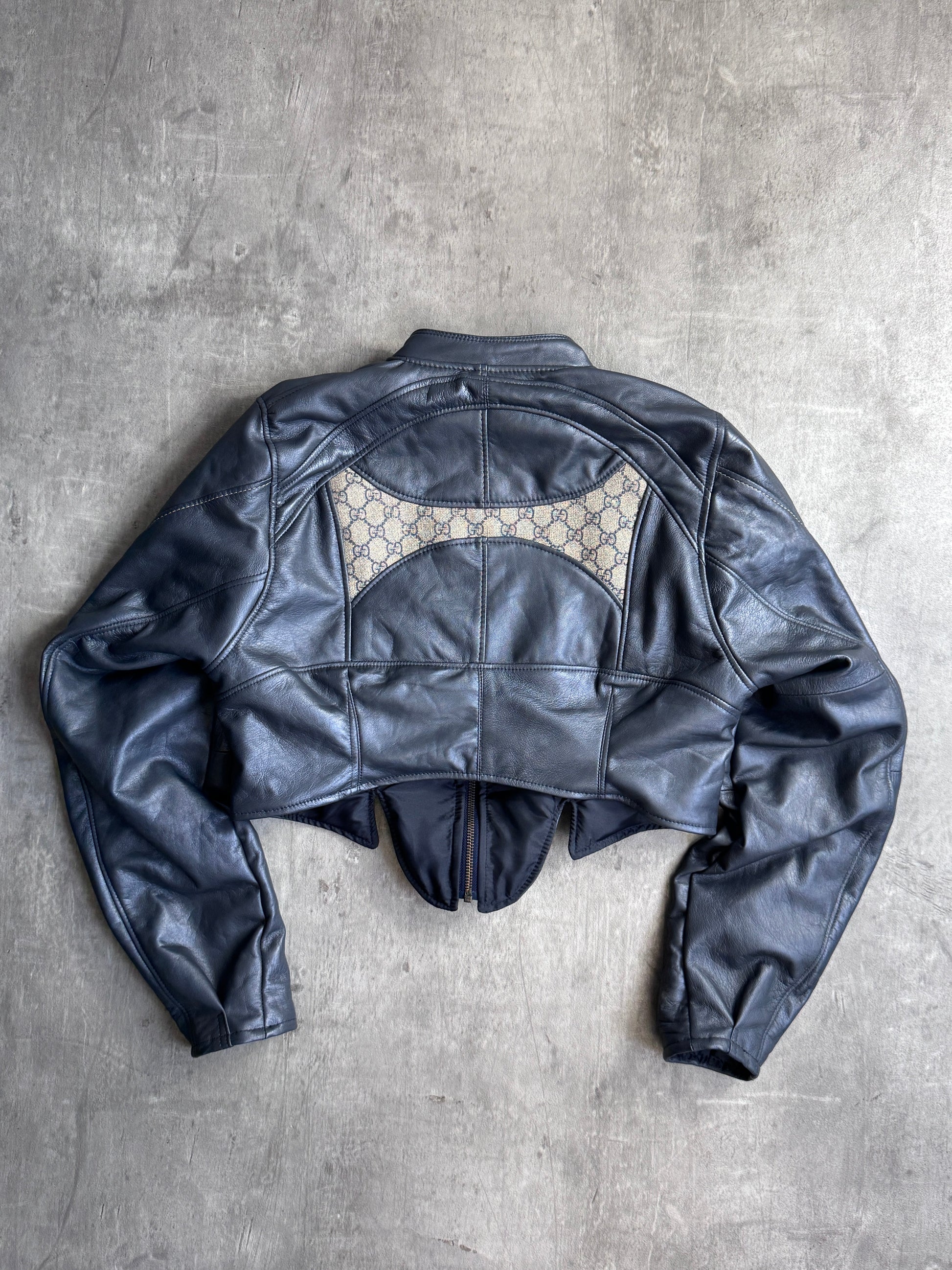 VT Rework: Gucci Monogram Cropped Blue Leather Racer Corset