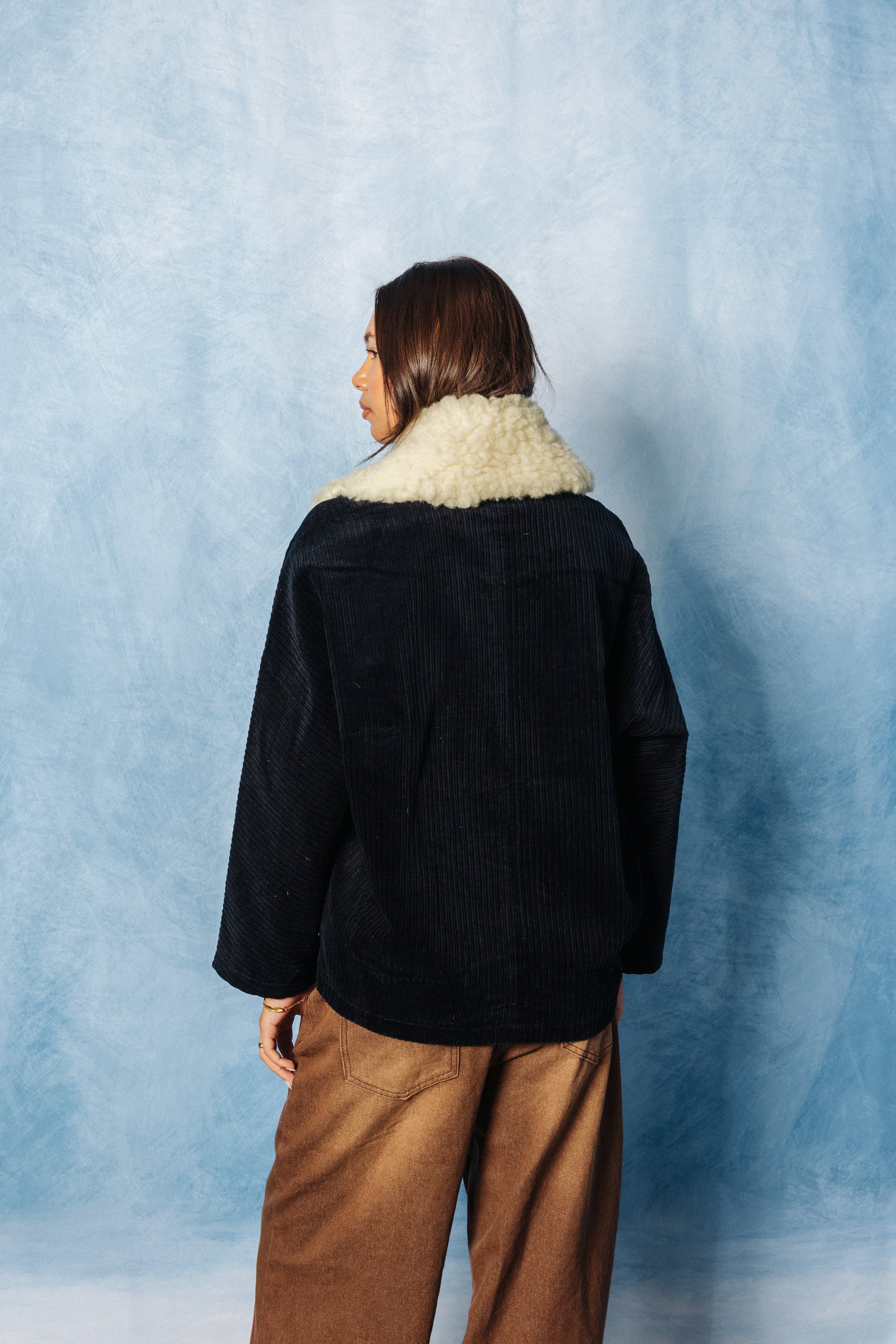 Y'S Yohji Yamamoto Shearling Collar Corduroy Bomber Jacket