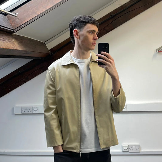 A timeless staple from Yves Saint Laurent, this Camel Tone Lightweight Harrington Jacket embodies refined simplicity with understated luxury. Crafted from a smooth cotton-blend shell, it features a contrasting blue lining, a classic Harrington collar, and the signature YSL embroidery on the chest — subtle yet iconic.
