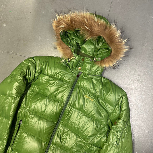 Marmot Puffer Jacket With Fur Hood In Green ( XL )