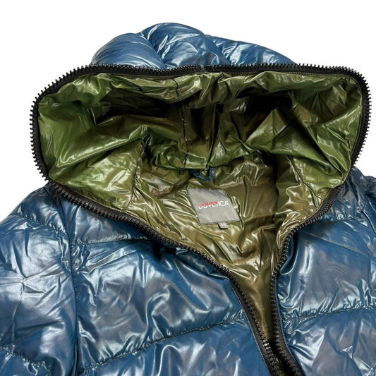Montbell two tone green down puffer jacket (S)
