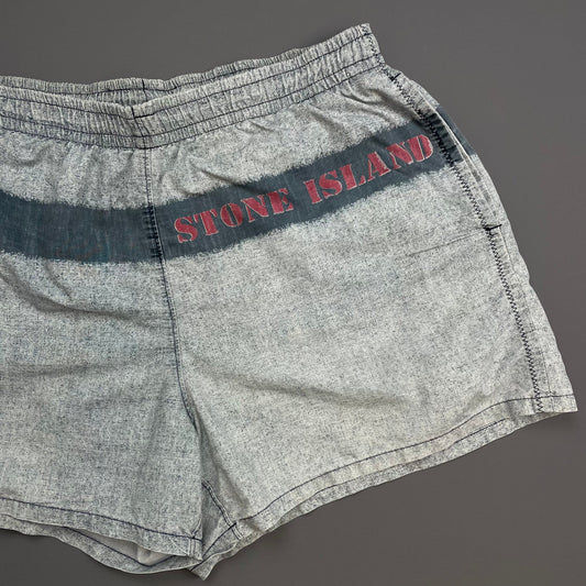 Stone Island Grey & Blue SS95 Spellout Swim Shorts