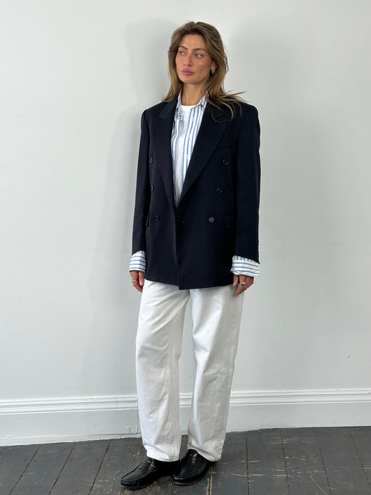 Yves Saint Laurent Pour Homme 1980s Pure Wool Double Breasted Blazer - M