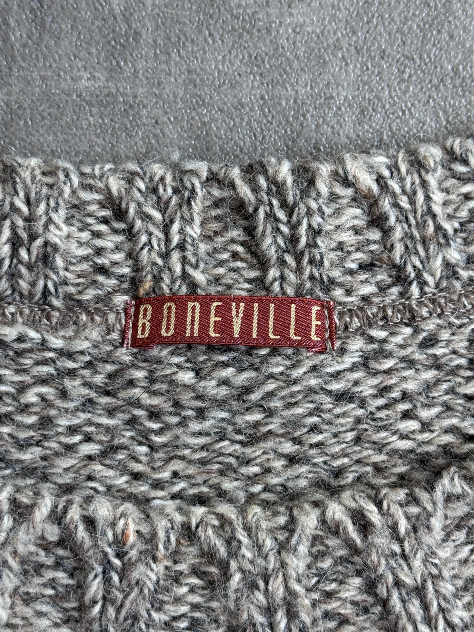 Designed in the early years of Boneville’s production, this piece represents a significant moment in the evolution of European workwear-inspired knitwear, balancing durability with understated sophistication.