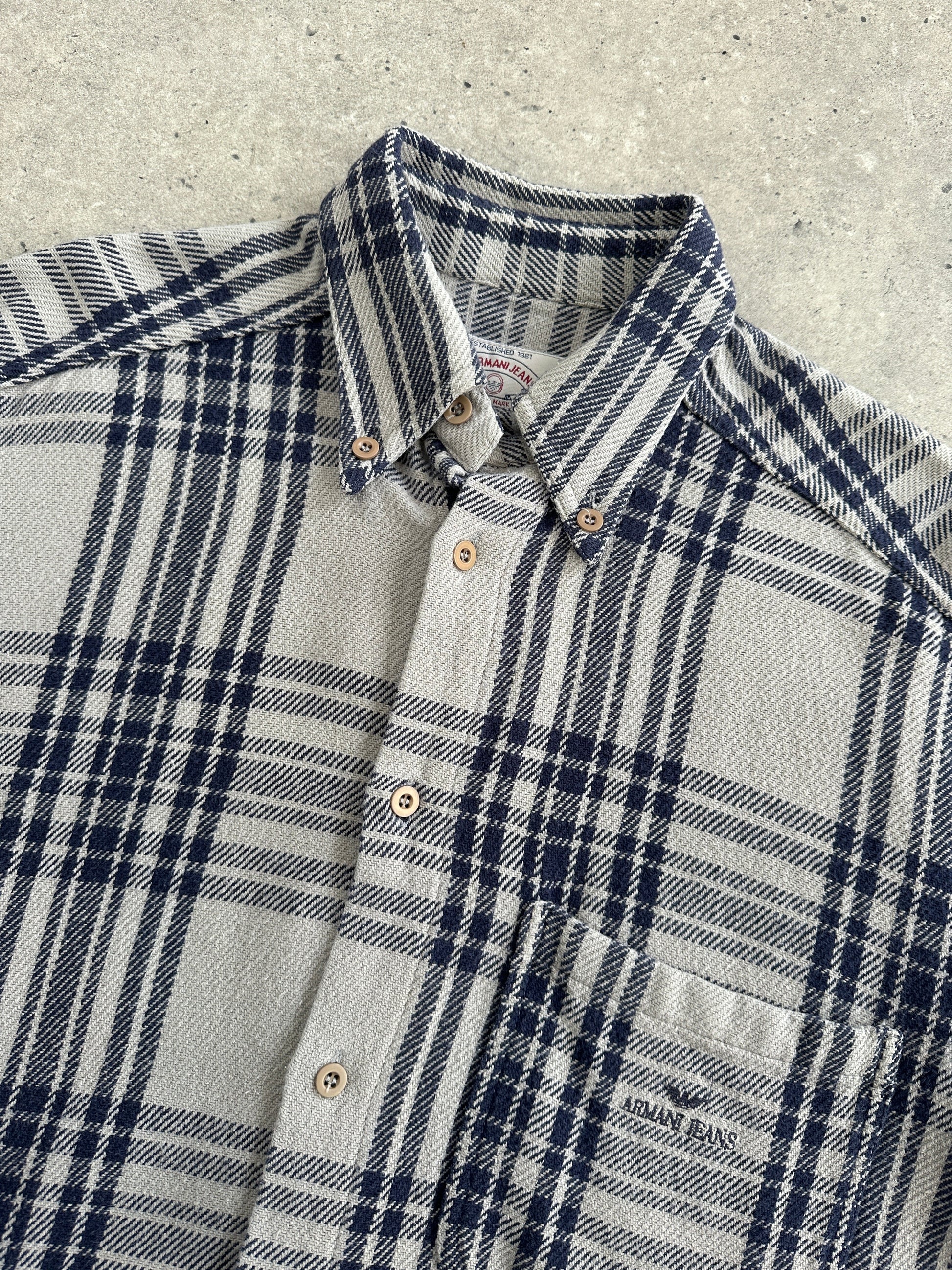 Armani Jeans Check Flannel Pure Cotton Logo Shirt - L/XL