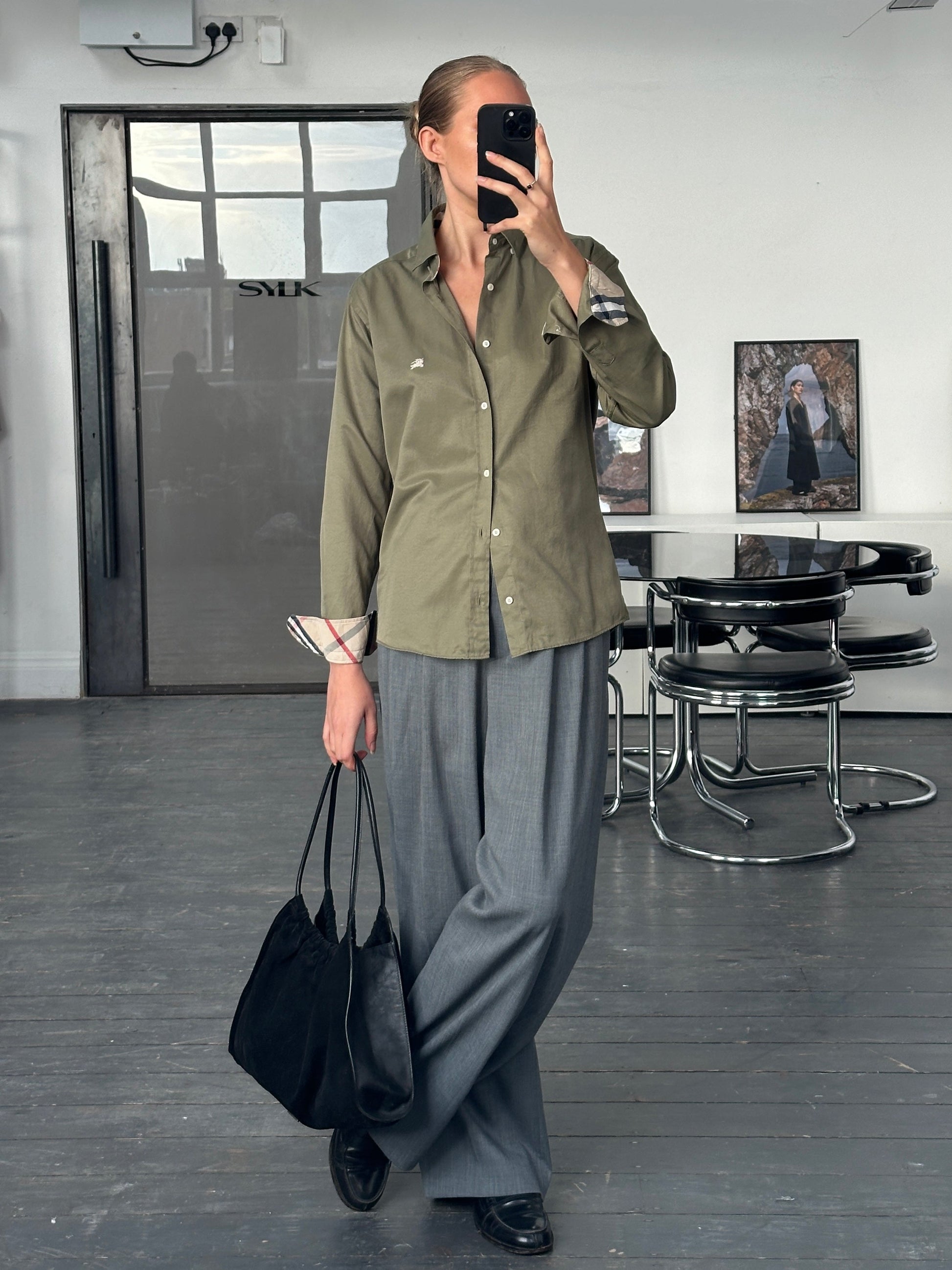 ~ Tailored cotton shirt in olive green