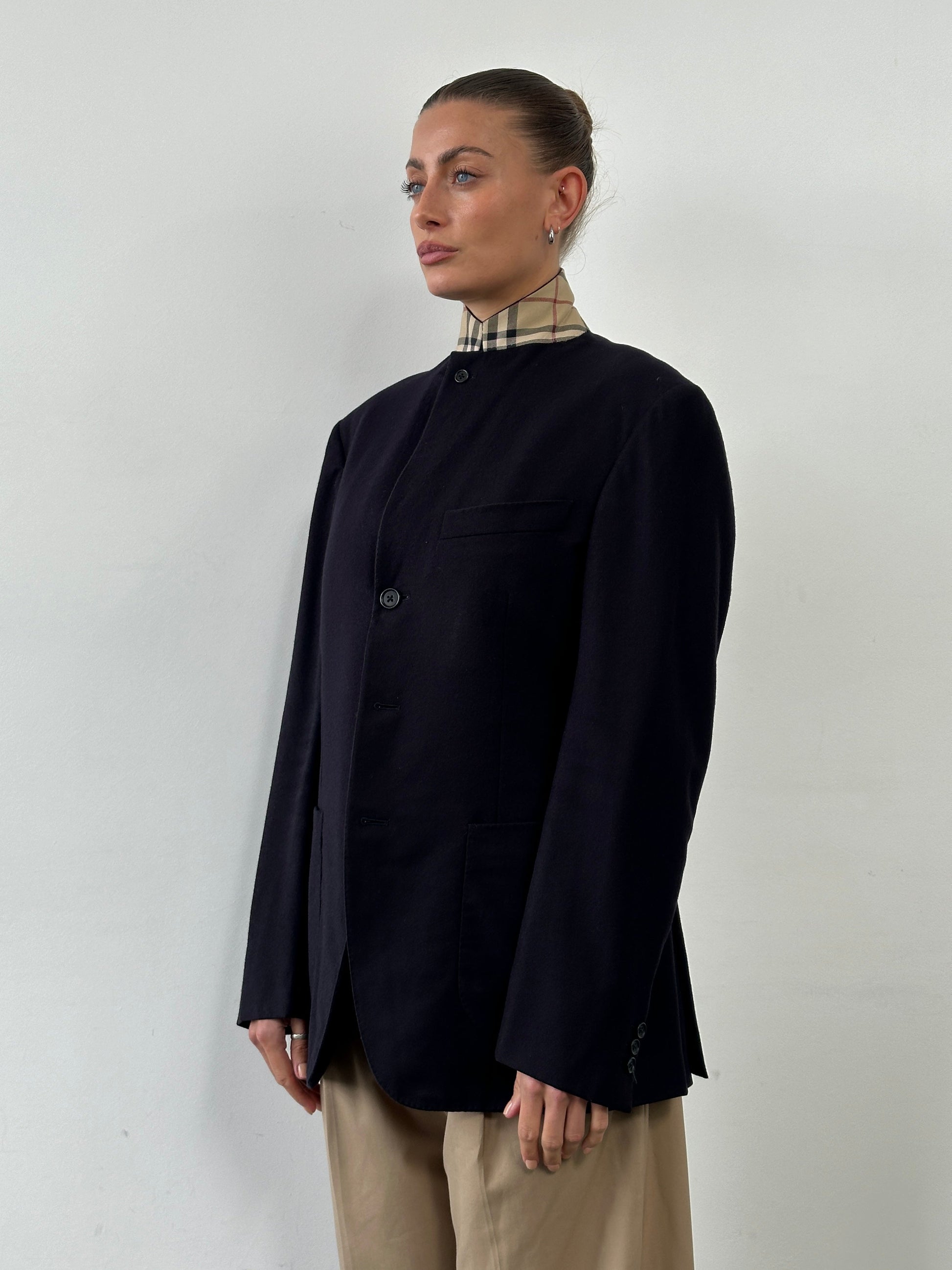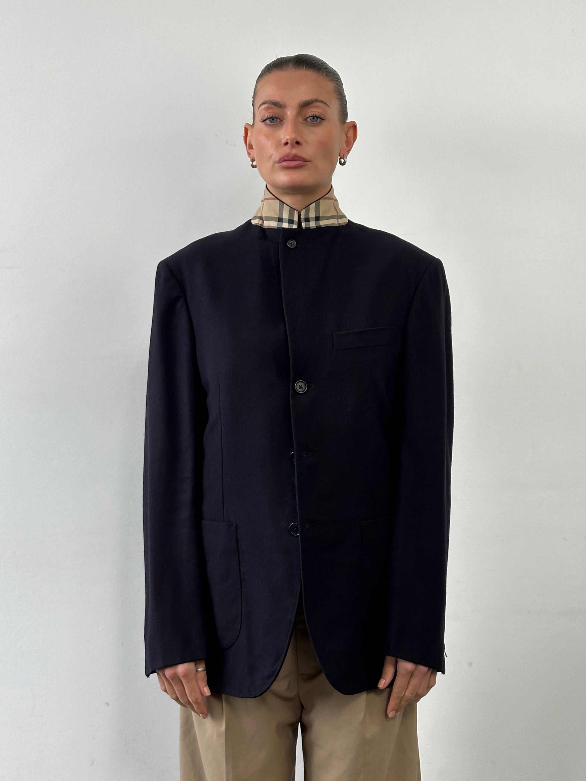 Burberry London High Neck Nova Check Wool Blazer - 38R/M