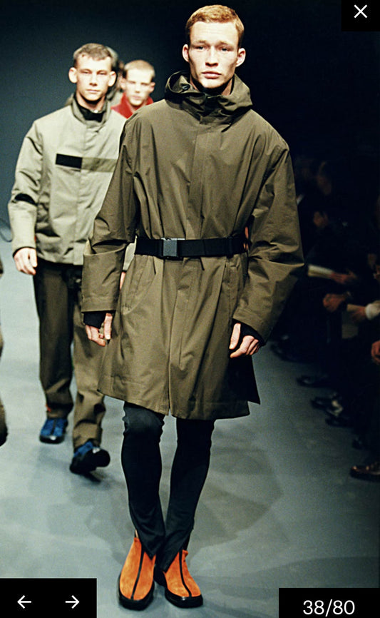 Excellent condition, no flaws. With tags. Tagged 52, Fits L / XL - Resin coated cotton From circa: Modern Measurements PTP: 23” Pit to Wrist: 21.5” Spine: 30”