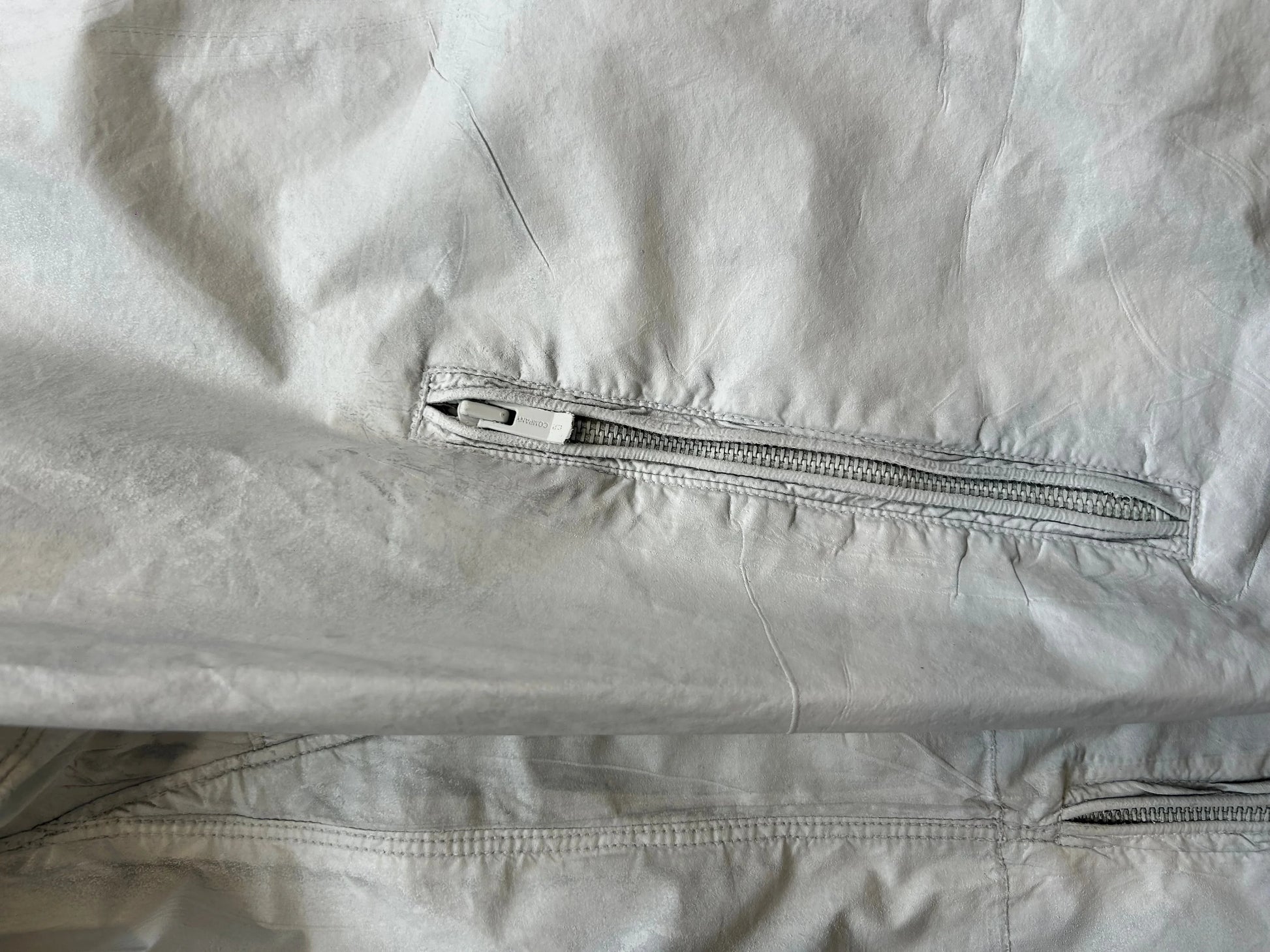 Note: the surface treatment on this jacket is intended to look "weathered" and owner should avoid the garment rubbing against other clothing as colour will transfer.
