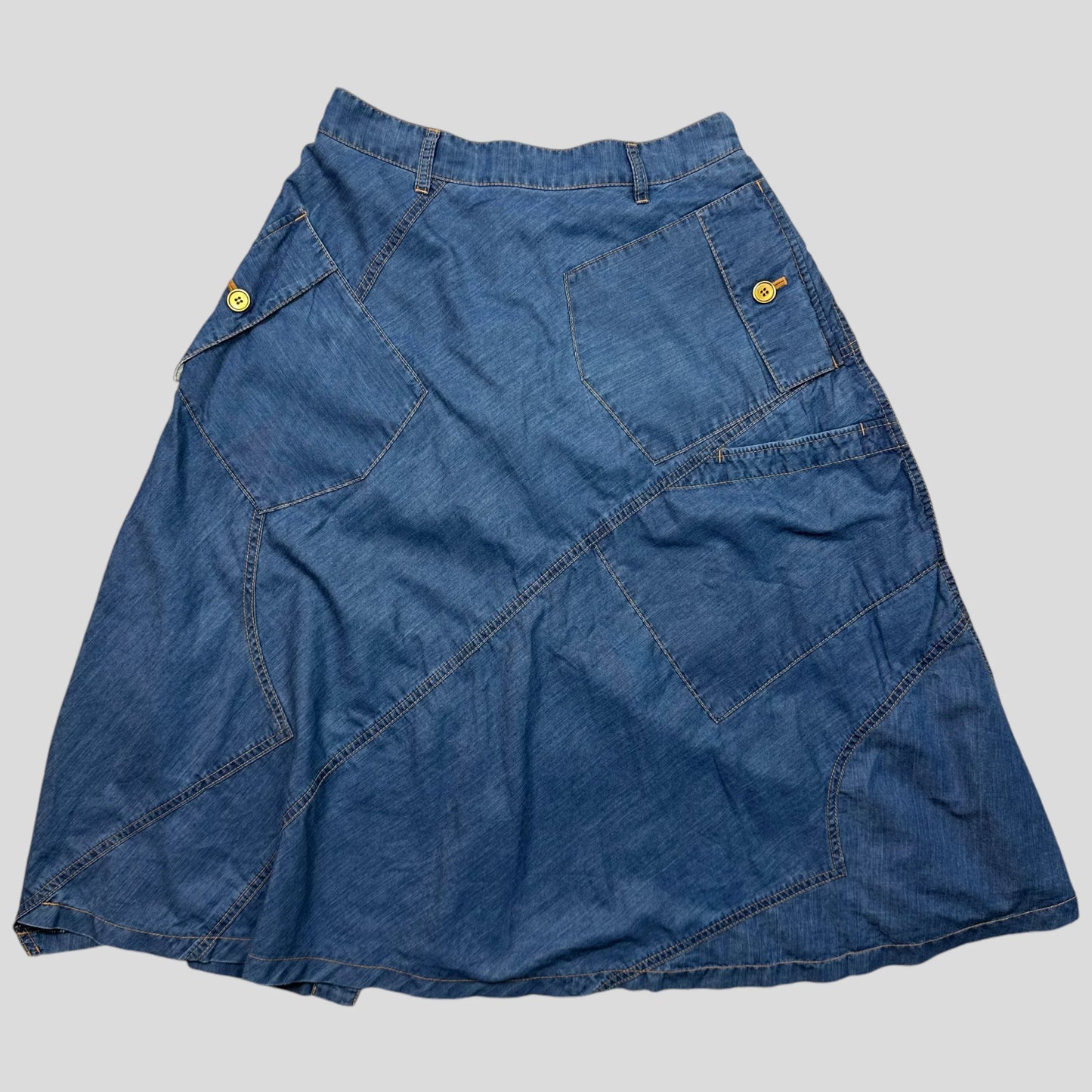 CDG Tricot 00’s Brodiere Denim Patchwork Split Cargo Skirt