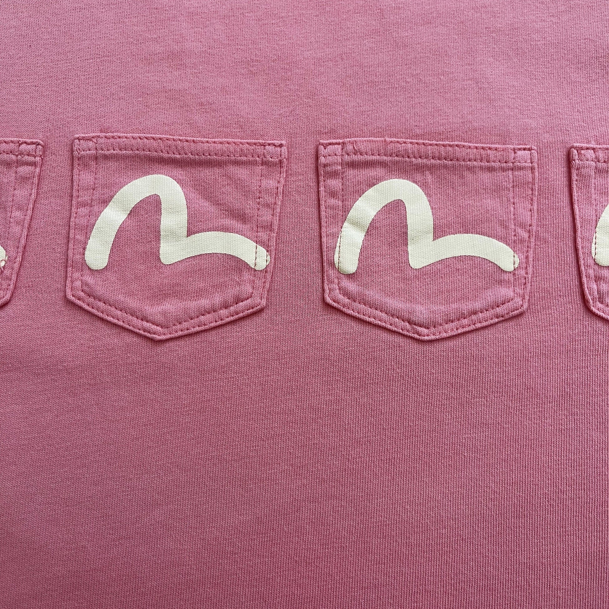 Evisu mens pink t-shirt with seagull logo multipockets.