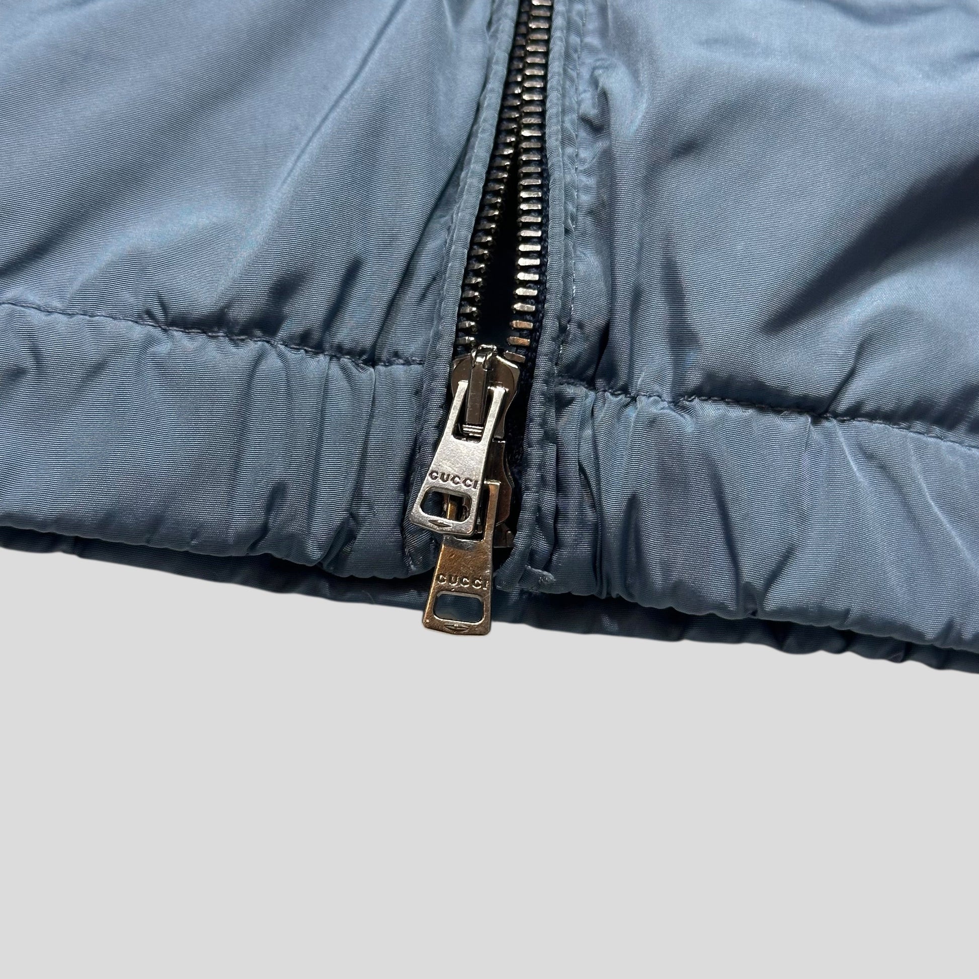 Made in Italy, Gucci twin metal front zip, Gucci buttons.