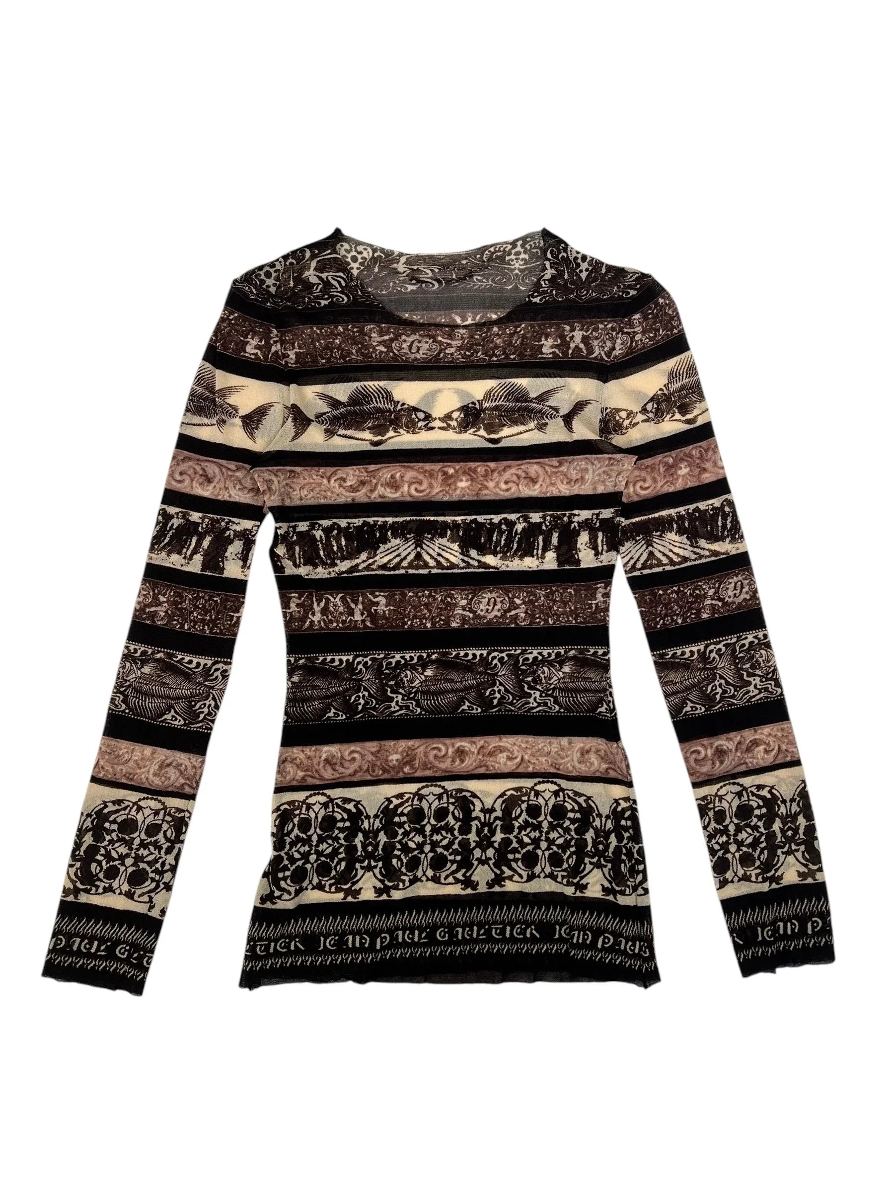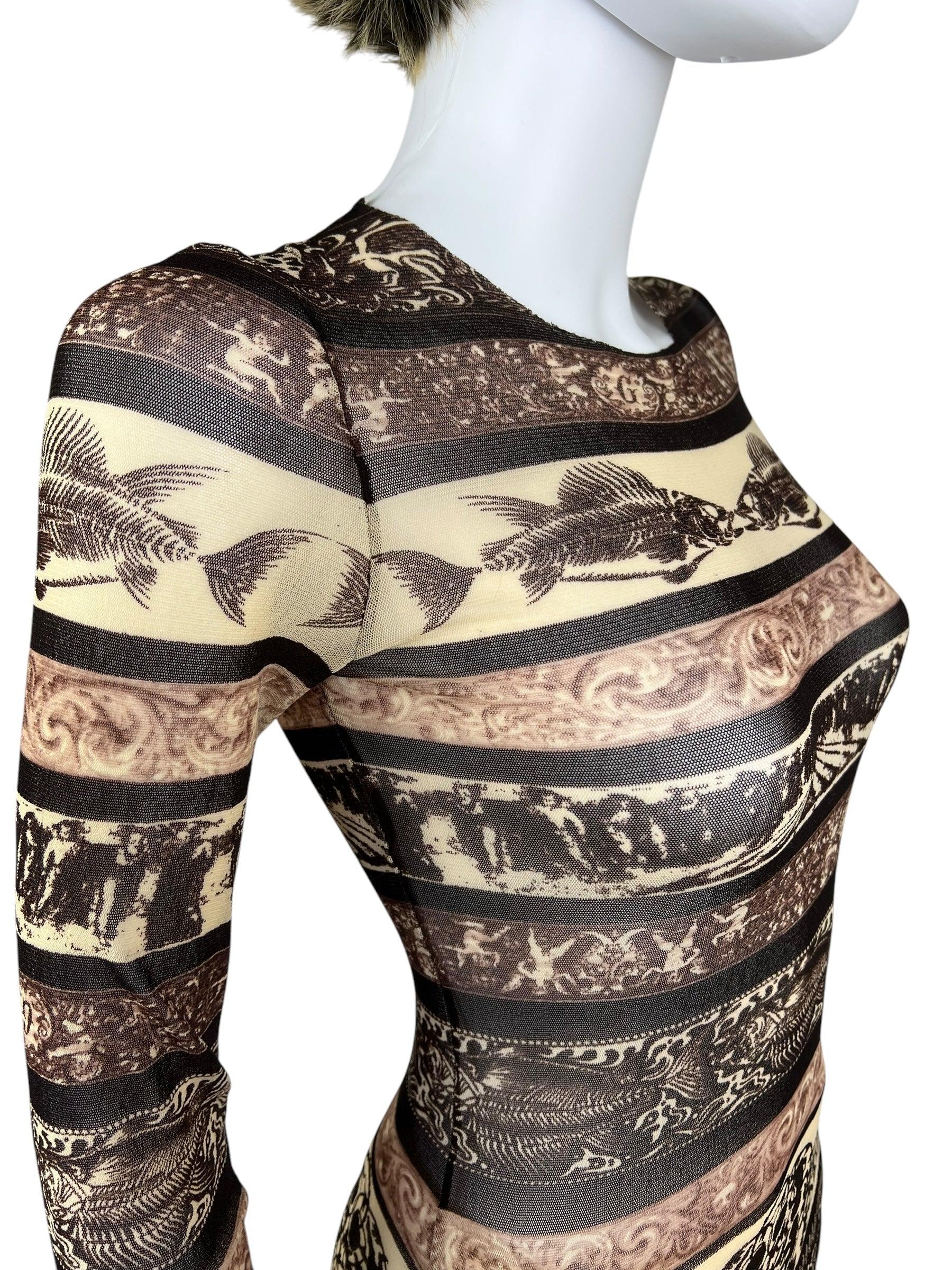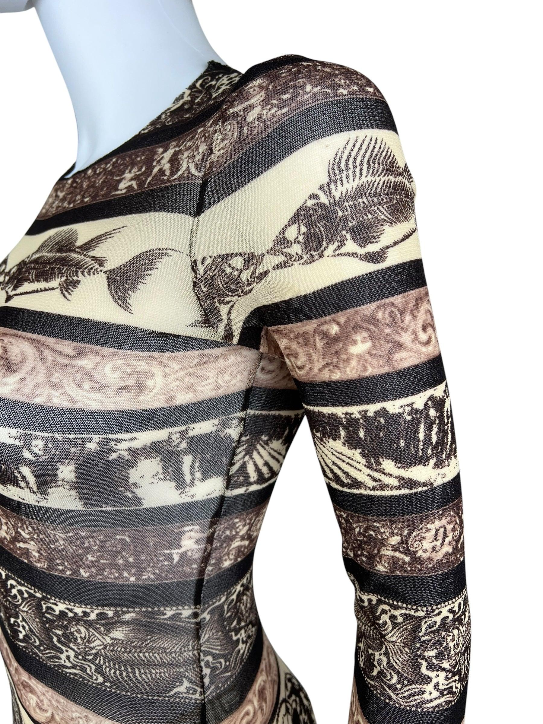 Jean Paul Gaultier S/S 1998 X-Ray mesh top. Super stretchy. Size XS/S/M (UK6/8/10/12). The X-Ray fish pattern was seen on the hem of a shawl on the SS98 runway as shown. All details below👇
