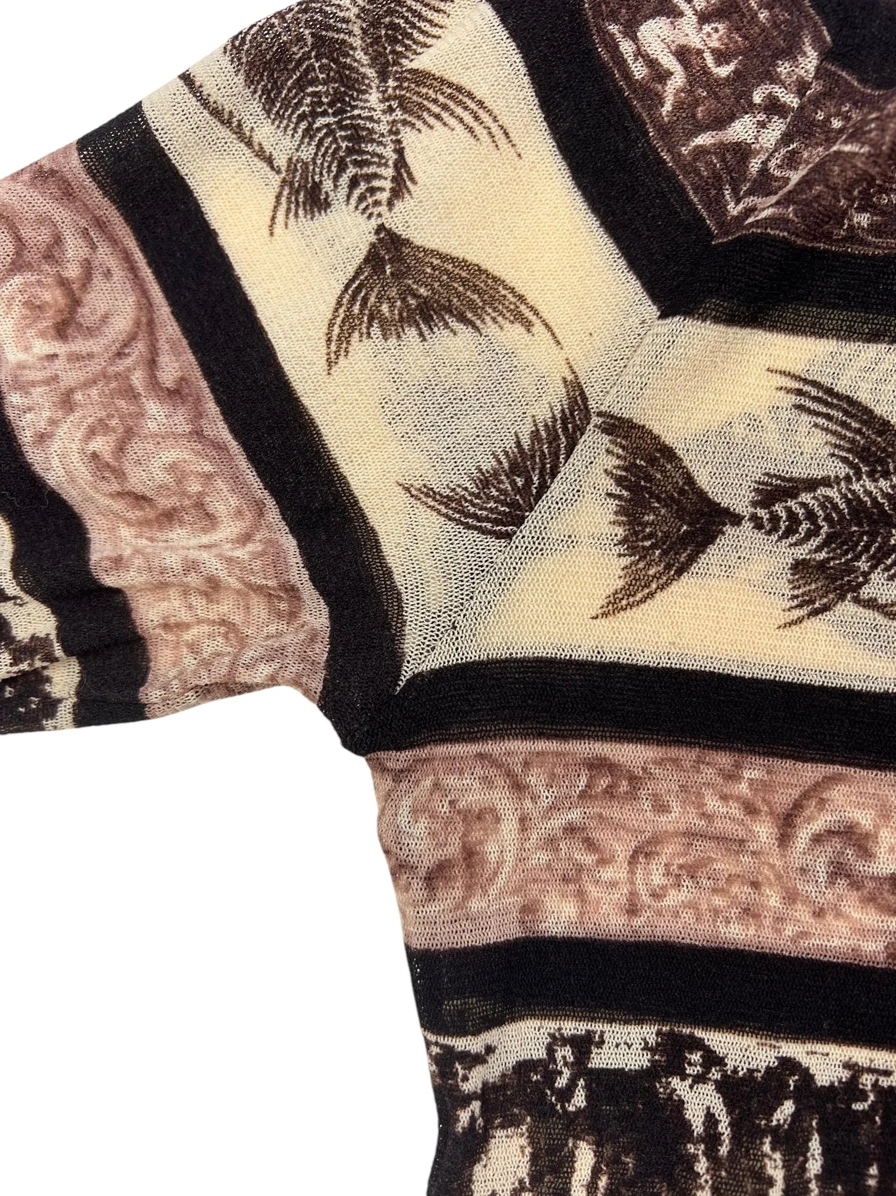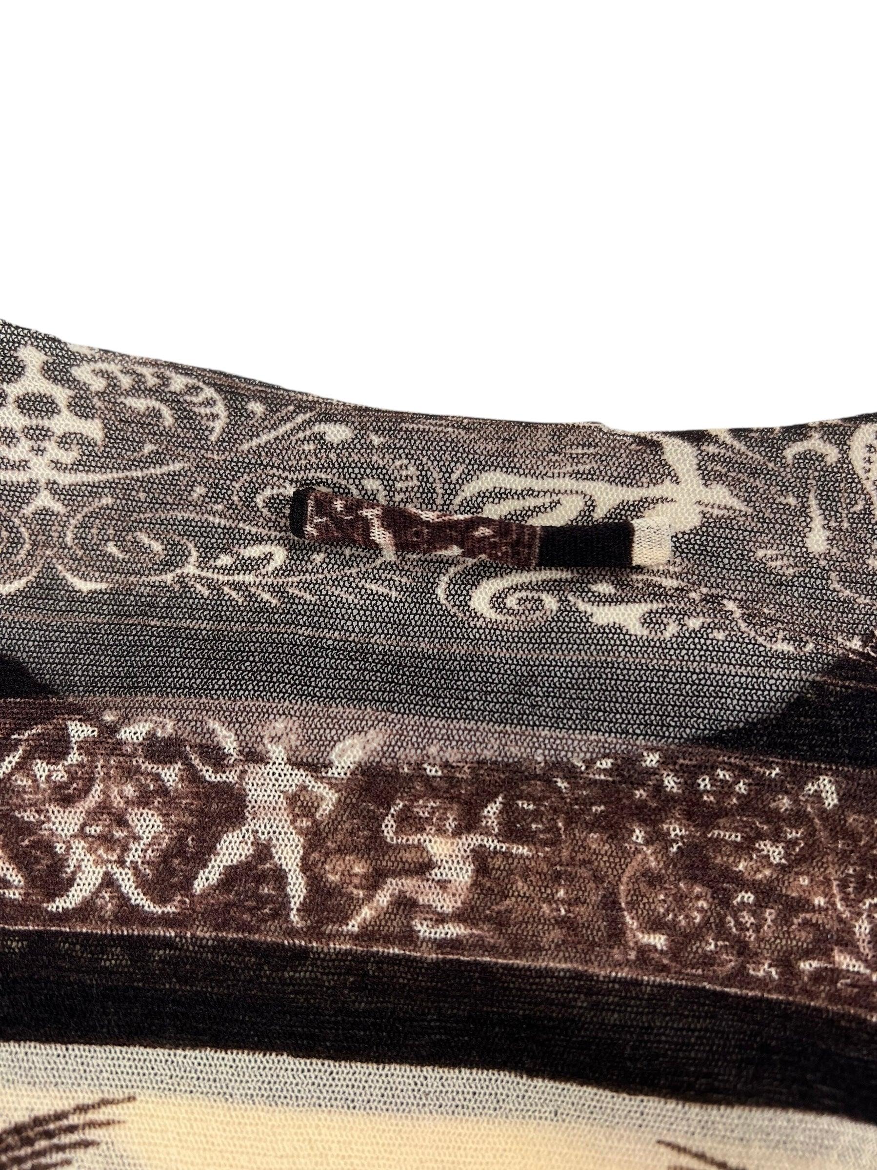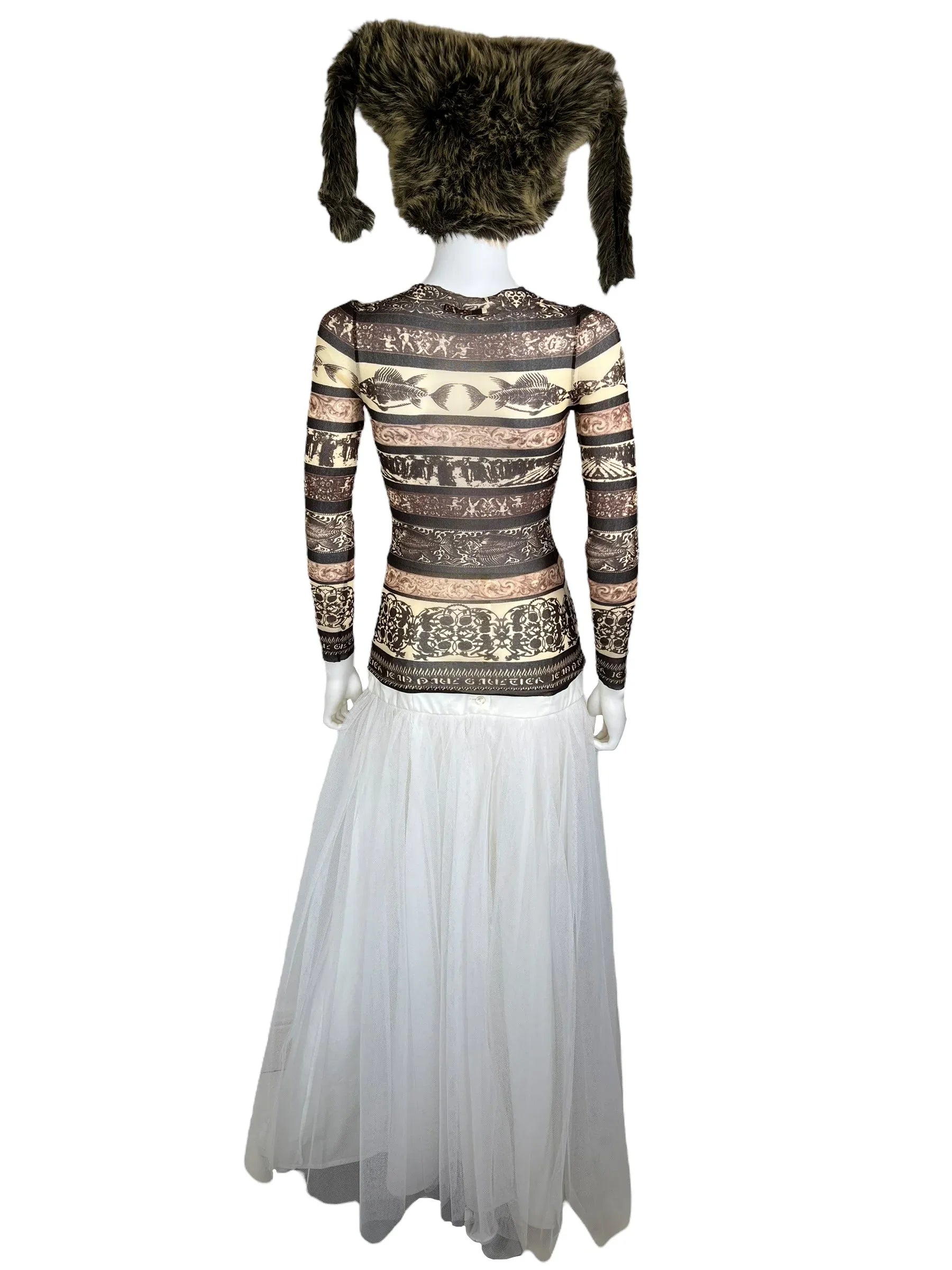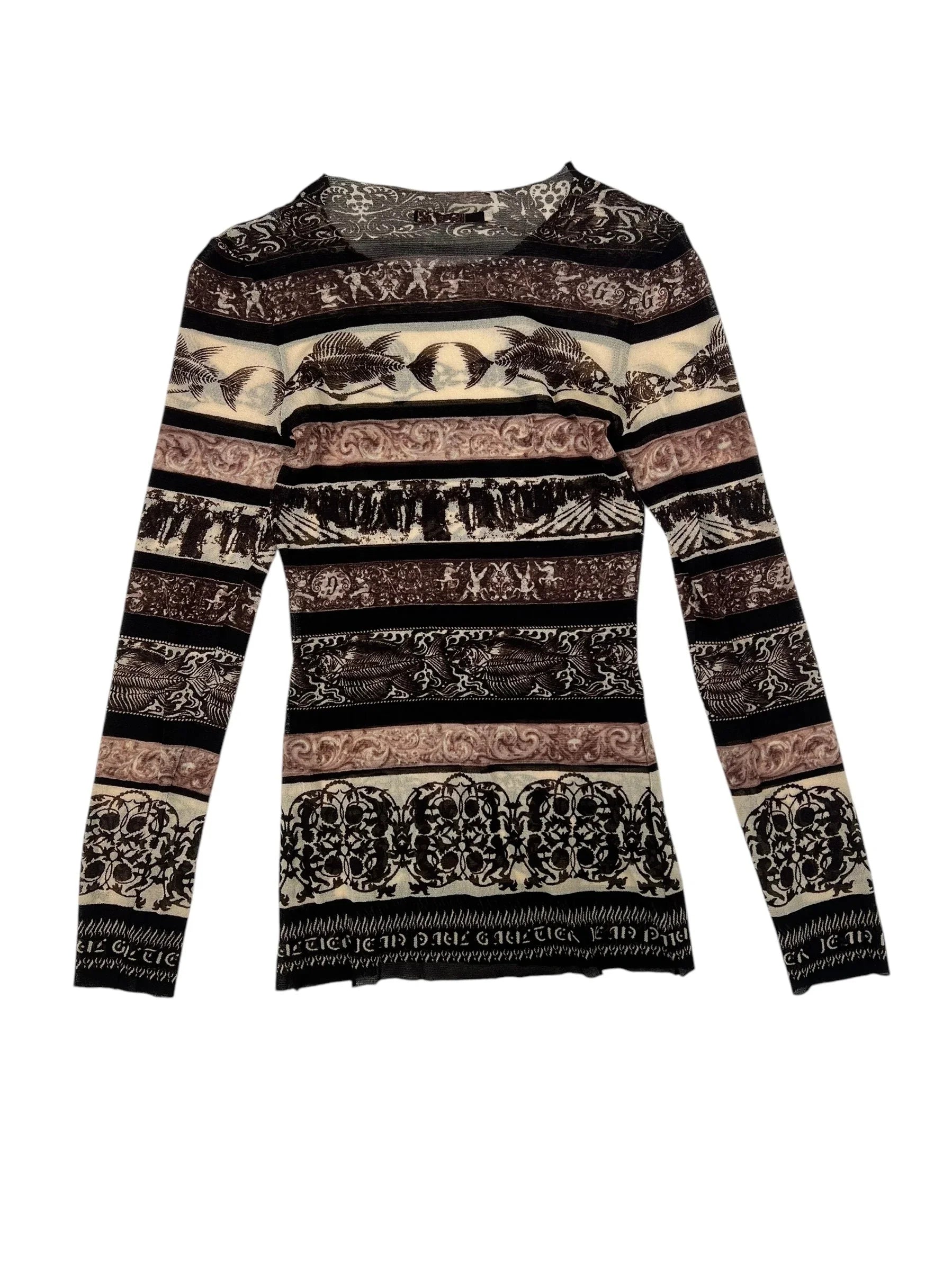 Jean Paul Gaultier S/S 1998 X-Ray mesh top. Super stretchy. Size XS/S/M (UK6/8/10/12). The X-Ray fish pattern was seen on the hem of a shawl on the SS98 runway as shown. All details below👇