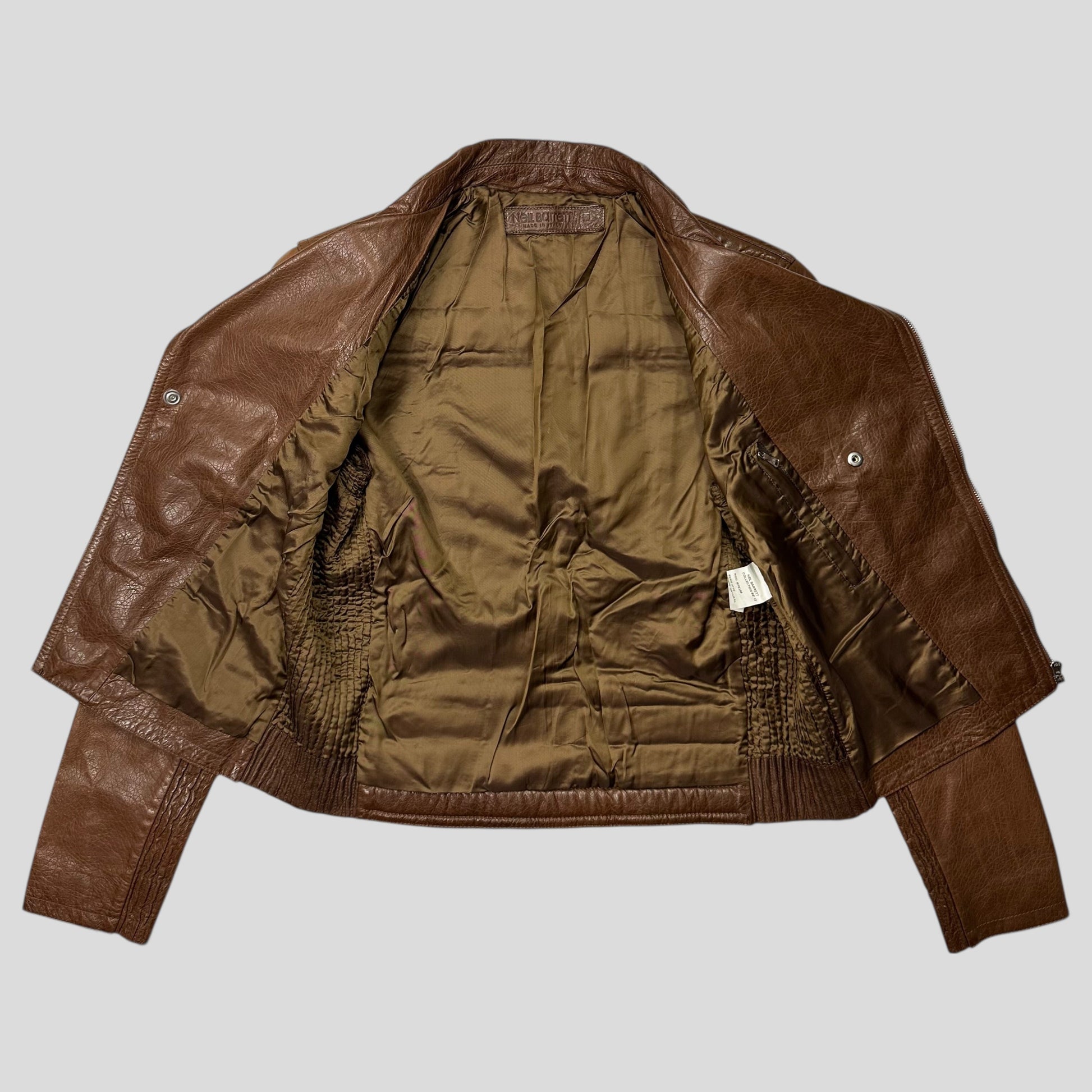 Neil Barrett 2012 Leather Padded Brown Multipocket Moto Jacket - S