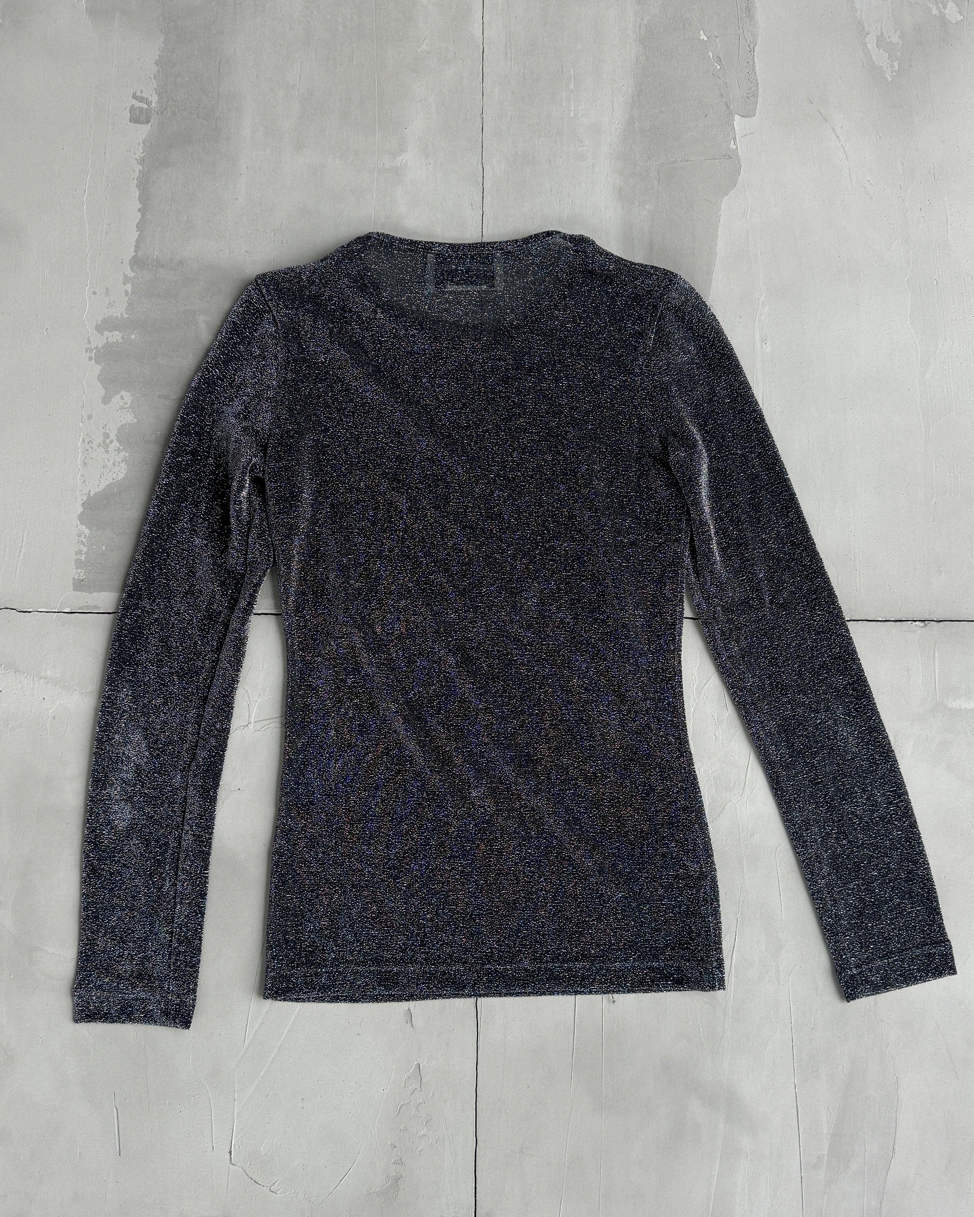 Paco Rabanne Black & Silver Mesh Long Sleeve Top.