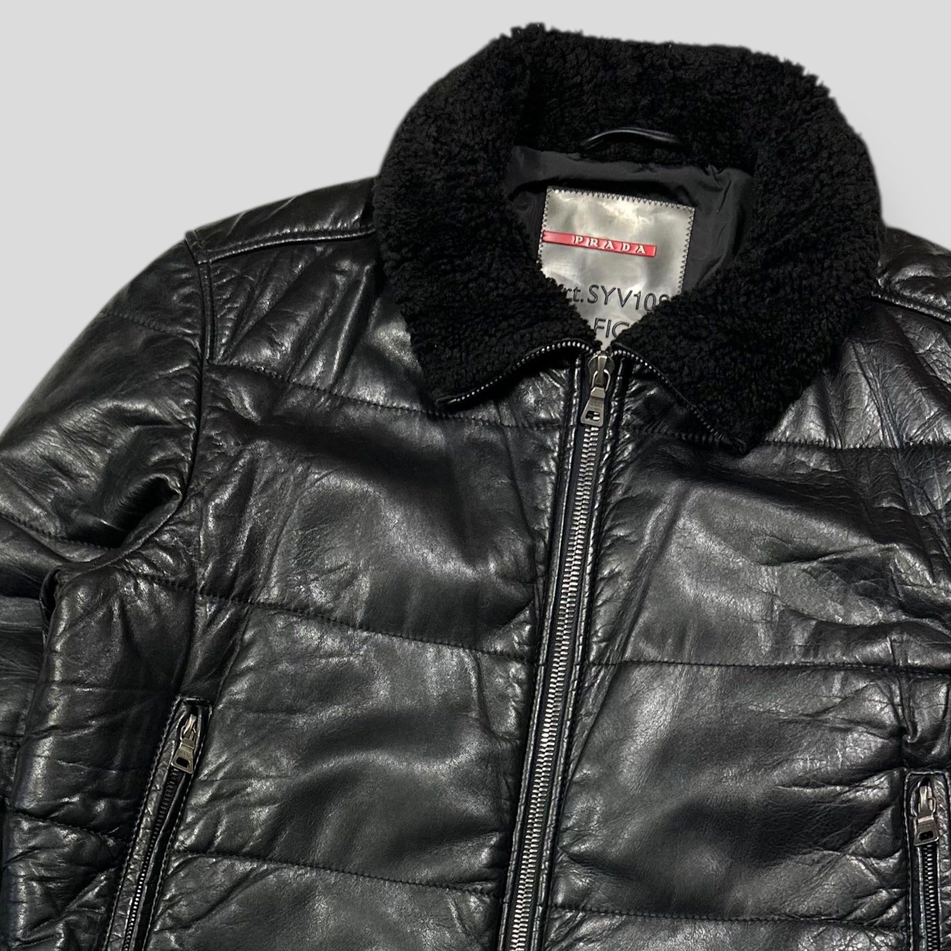 Prada Sport 00’s Leather Aviator Shearling Fur Collar Hooded Puffer - IT52 (L)