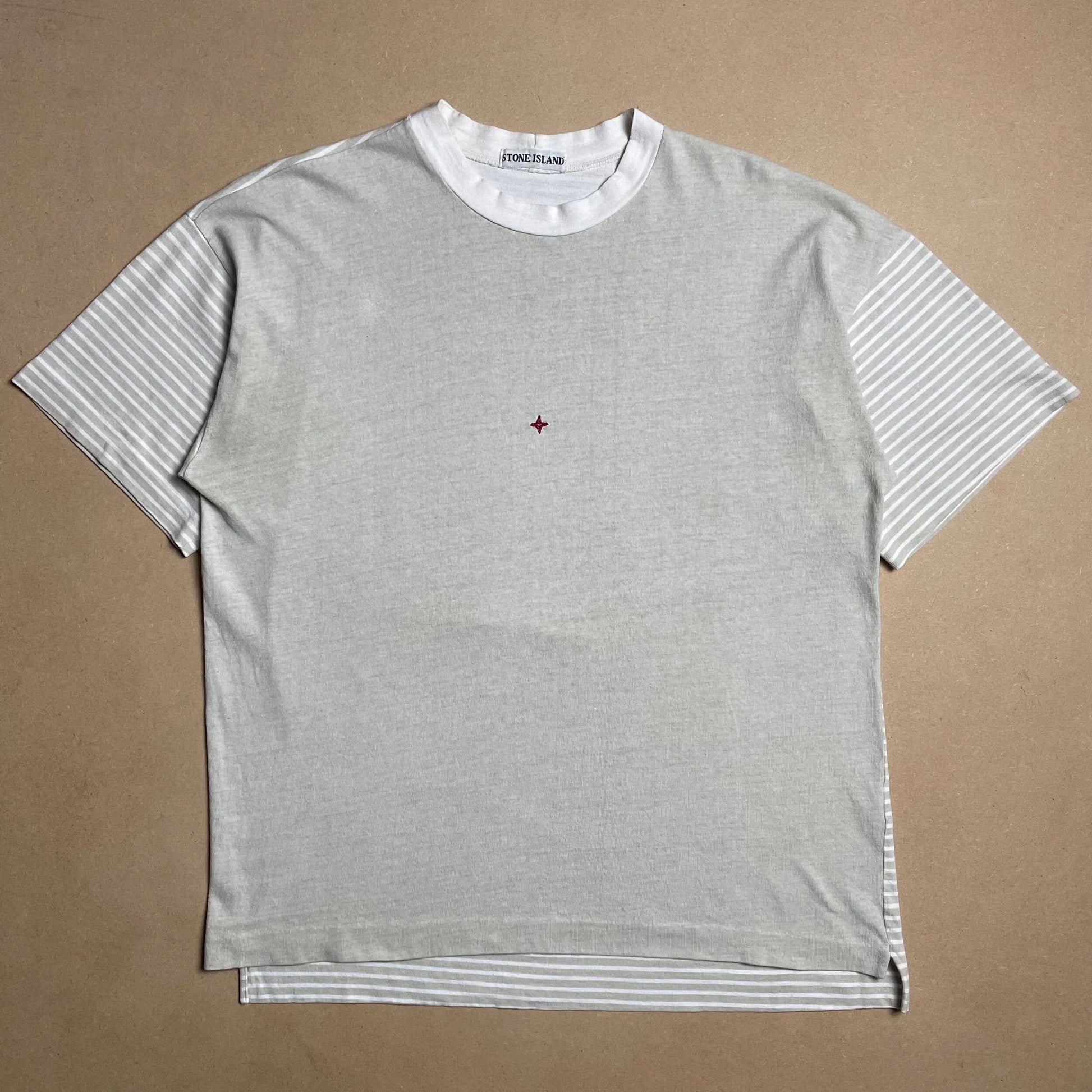 S/S 1986 Stone Grey Marina Spell Out Box Logo T-shirt