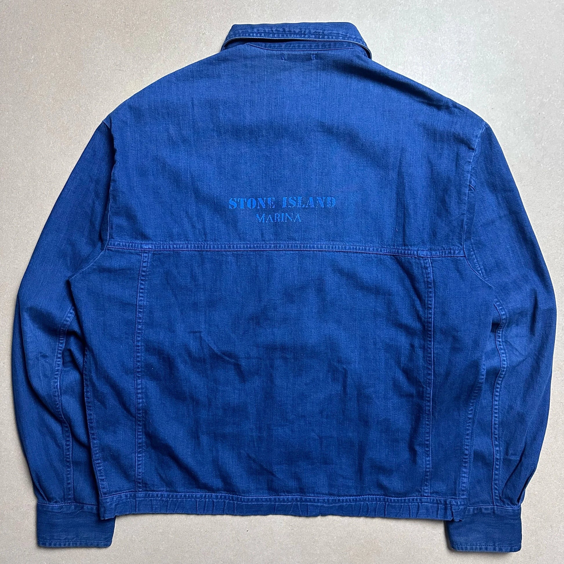 Designed by Massimo Osti. Soft cotton touch denim. Featuring engraved button fastening throughout. Reflective Marina stencil spell out to the back.