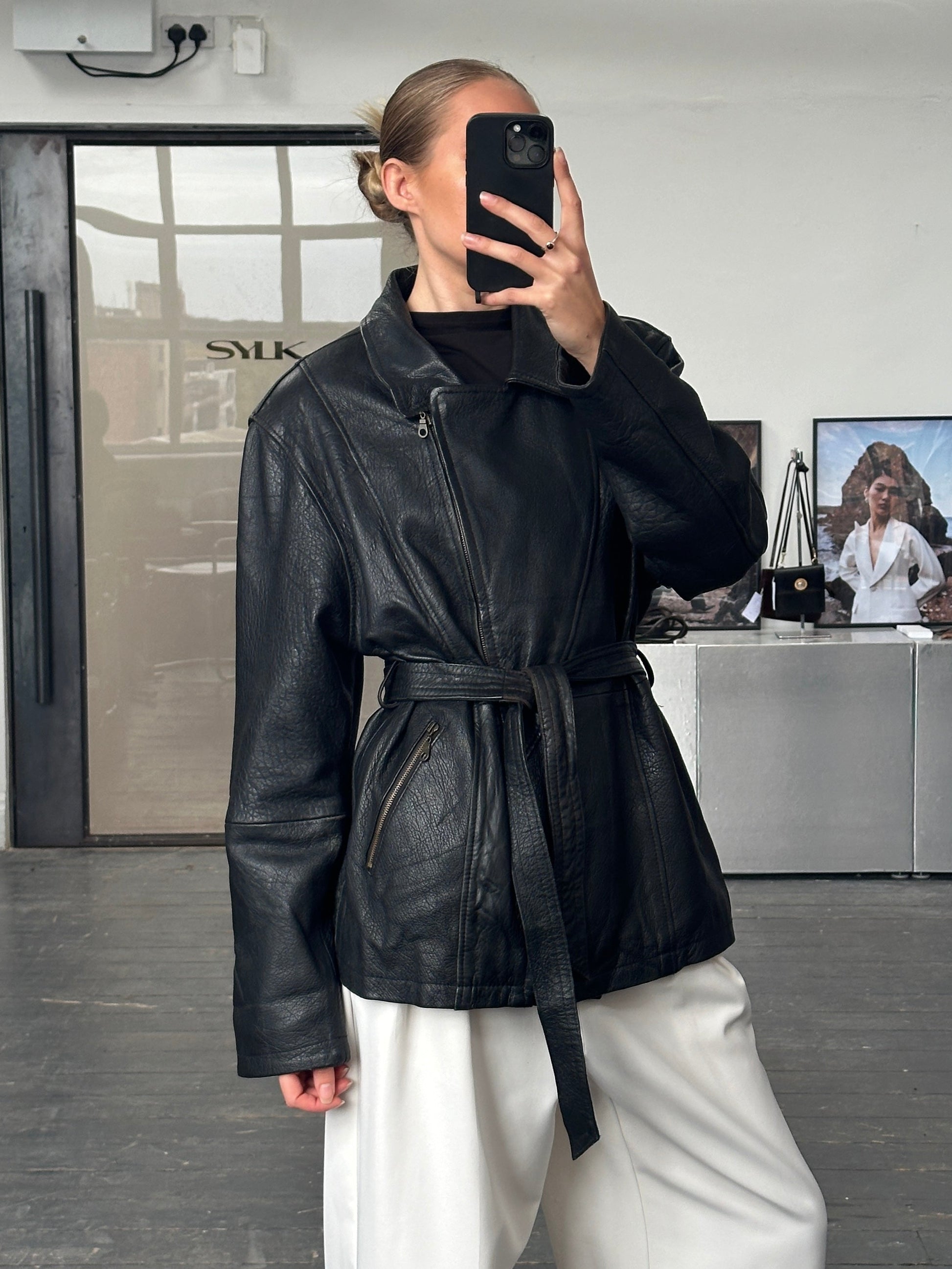 Vintage 1990s Lamb Leather Belted Jacket - XL