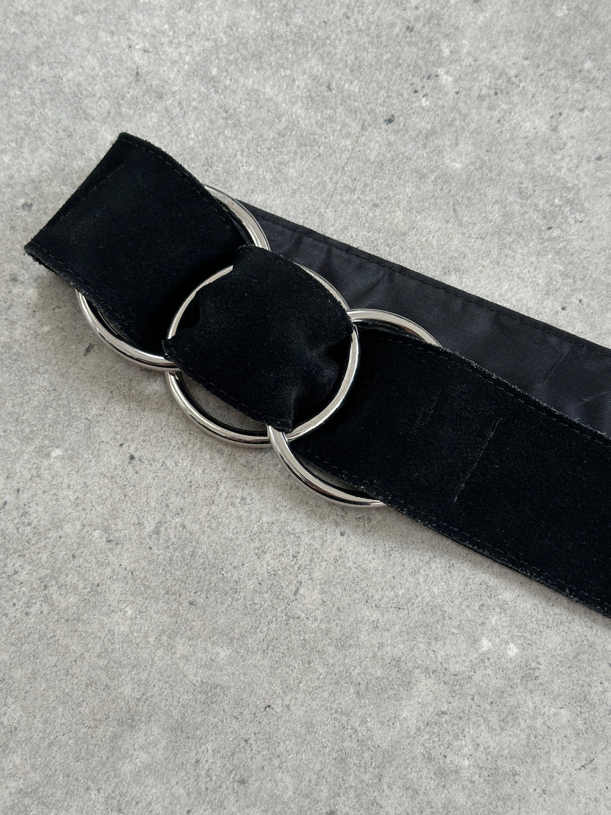 Vintage Chrome Ring Suede Belt - XS-M