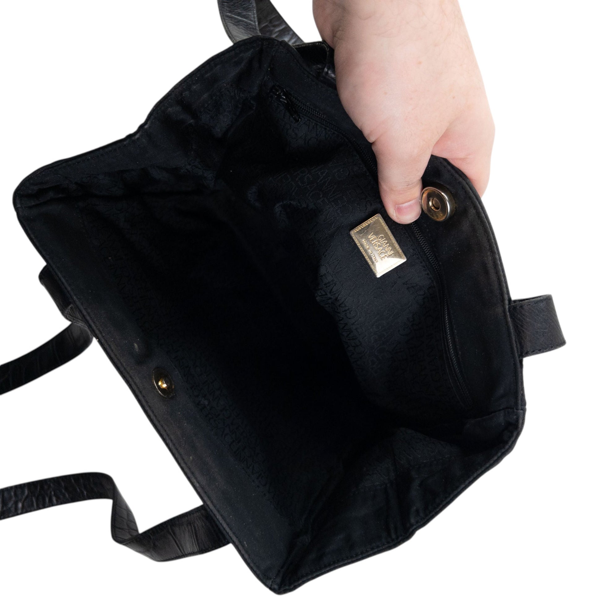 • Other info: Black colour, gold embossed hardware design, medusa head logo detail, minor general wear as seen