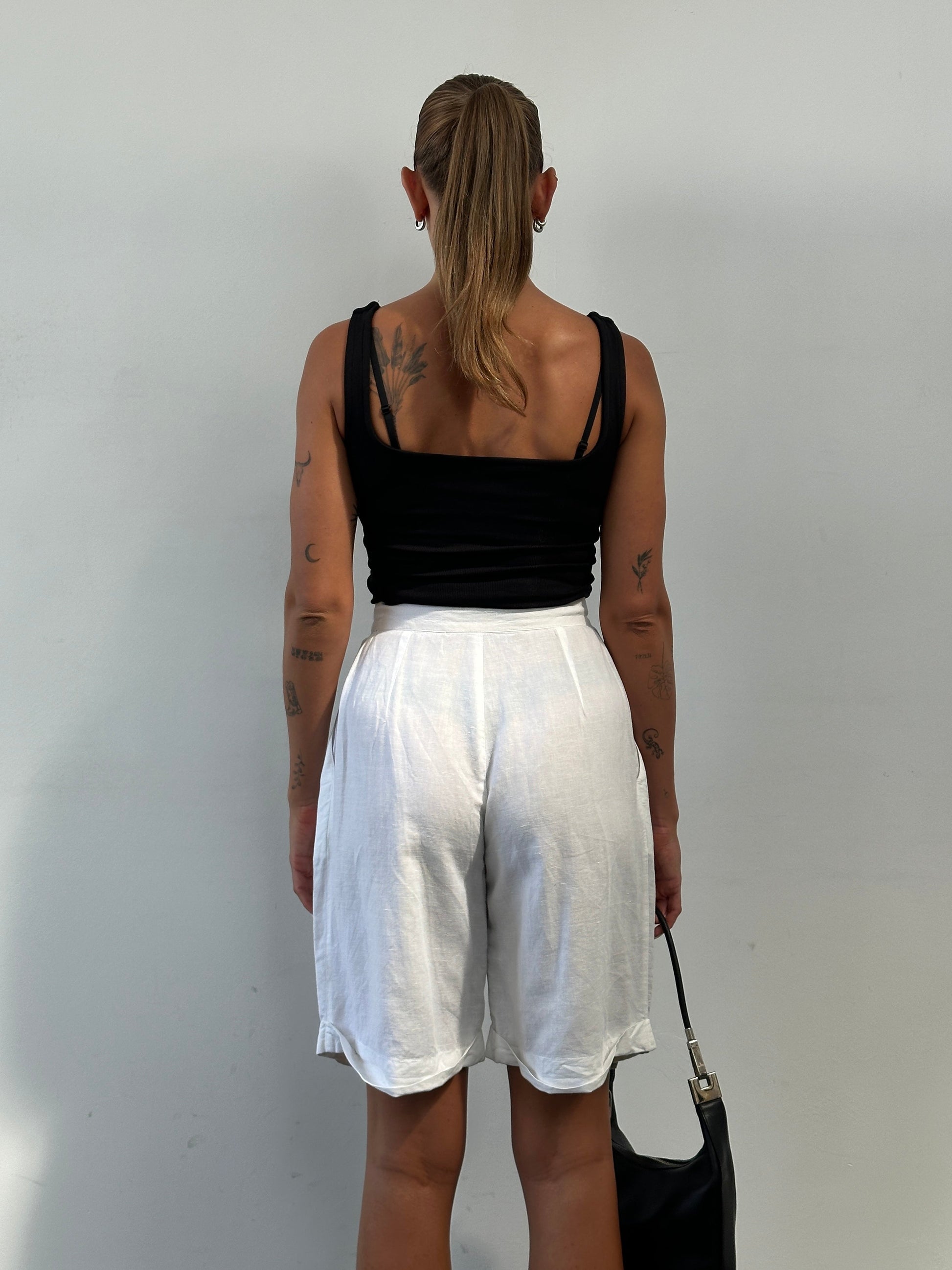 Vintage Linen Pleated High Waisted Wide Bermuda Shorts - W24