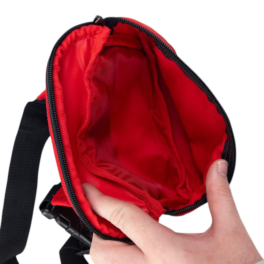 • Other info: Red colour, black contrast colour, embroidered logo patch, adjustable strap