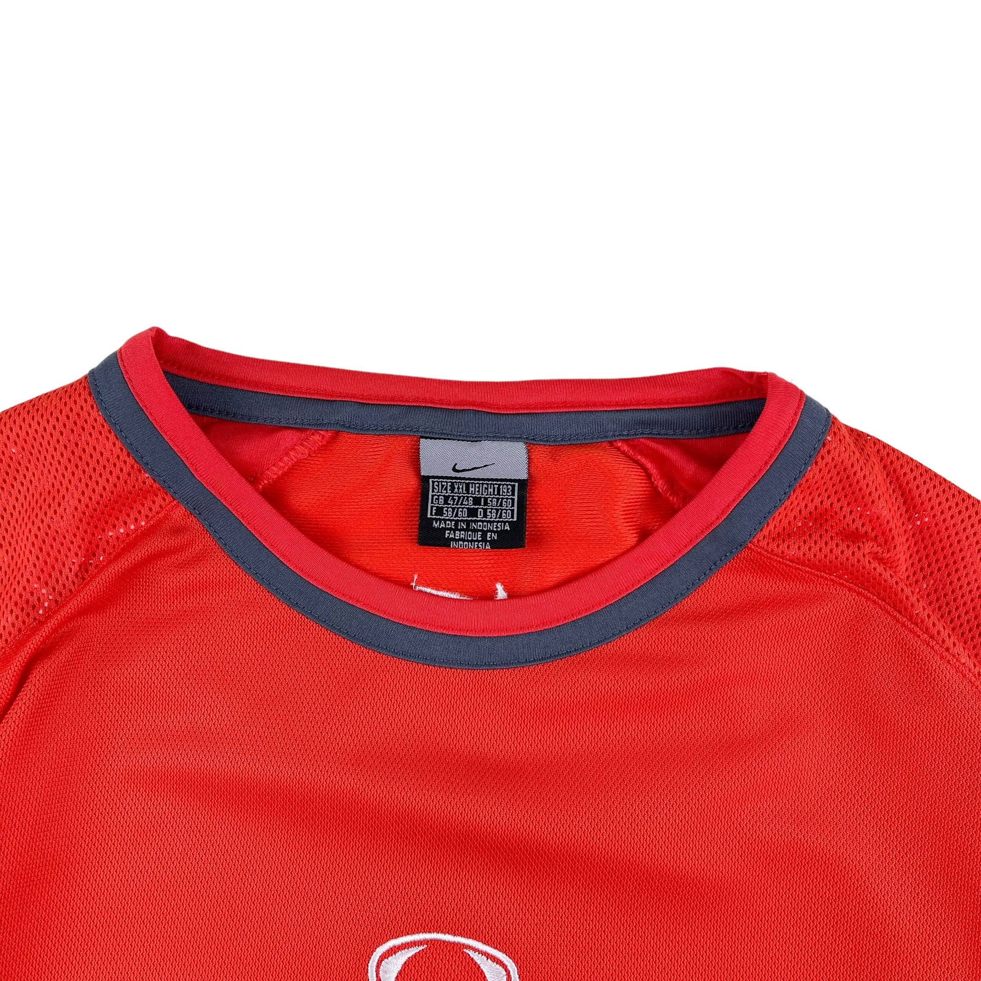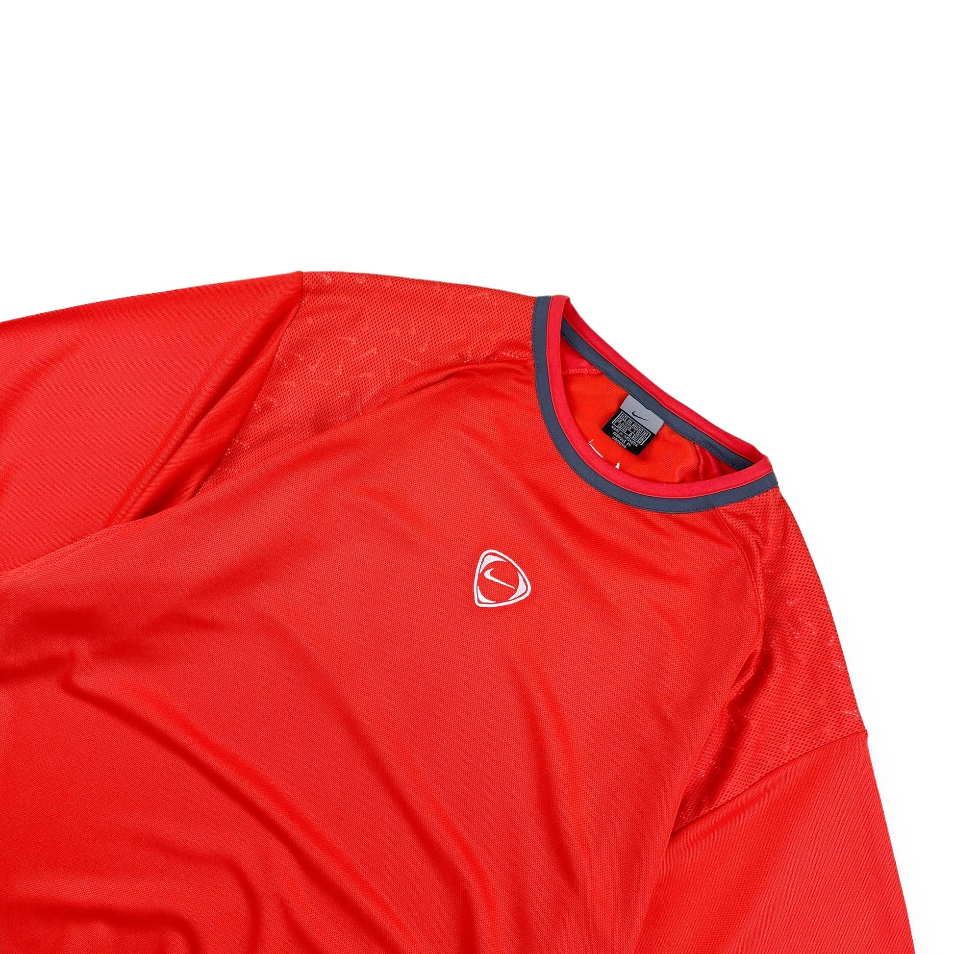 Early 00s Nike Dry Fit T with embroidered centre logo and repeat mini Swoosh under netted panels