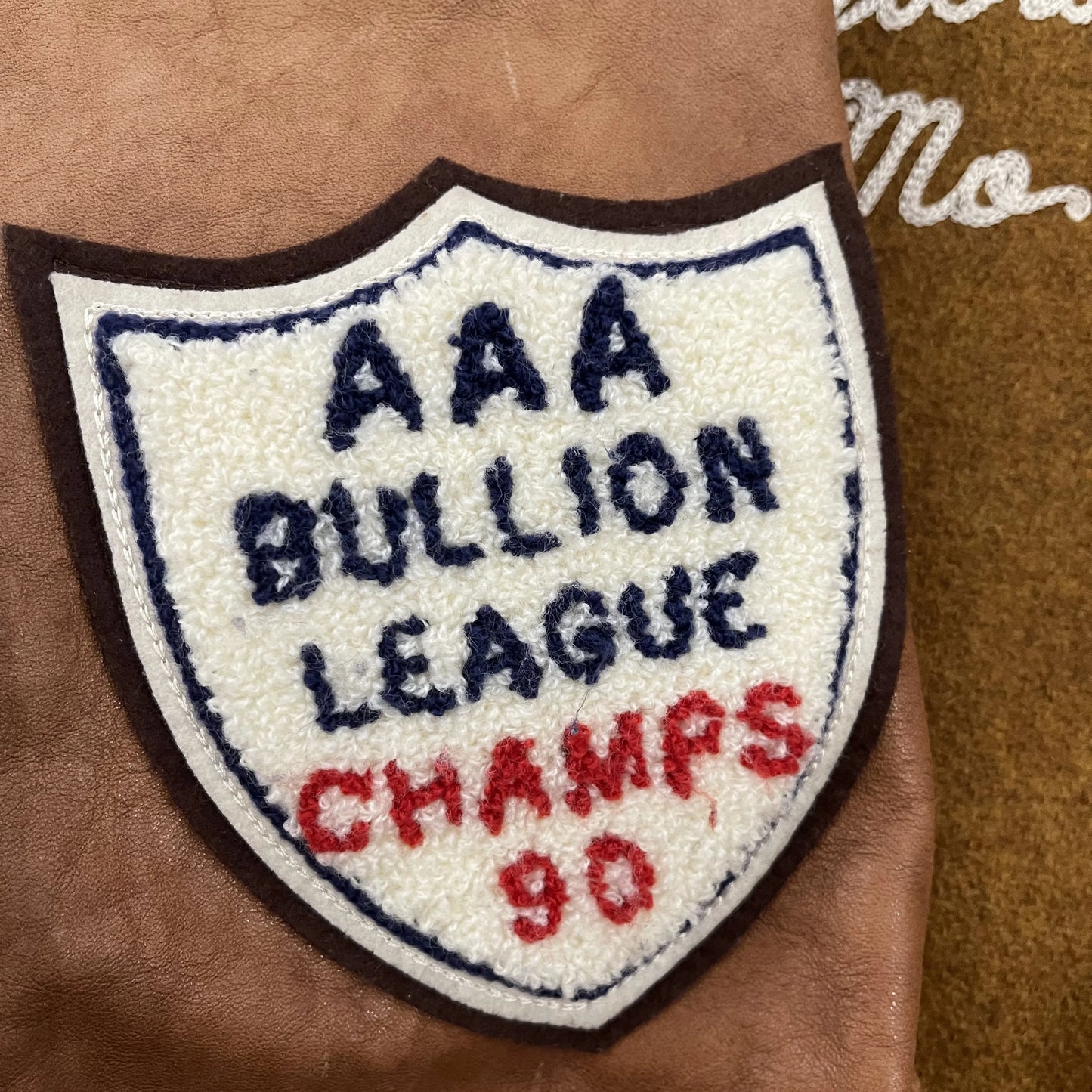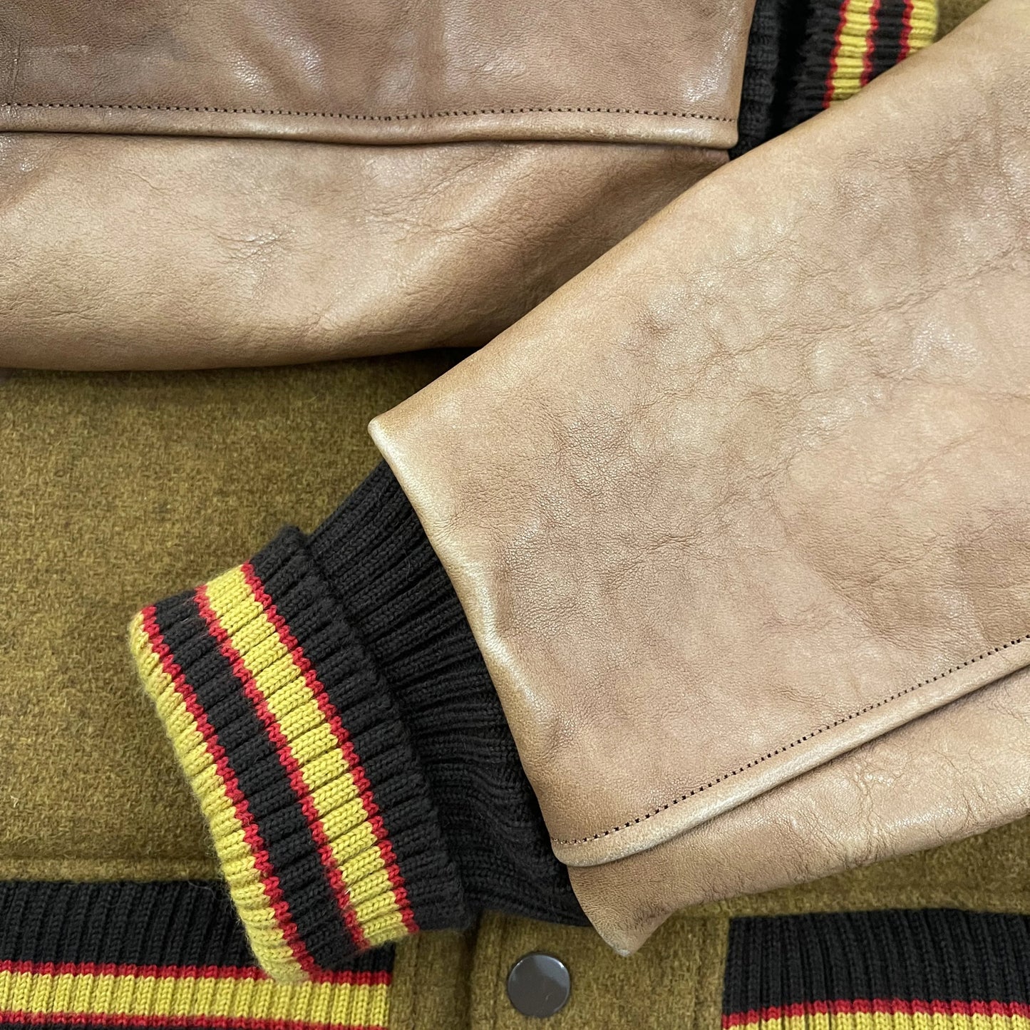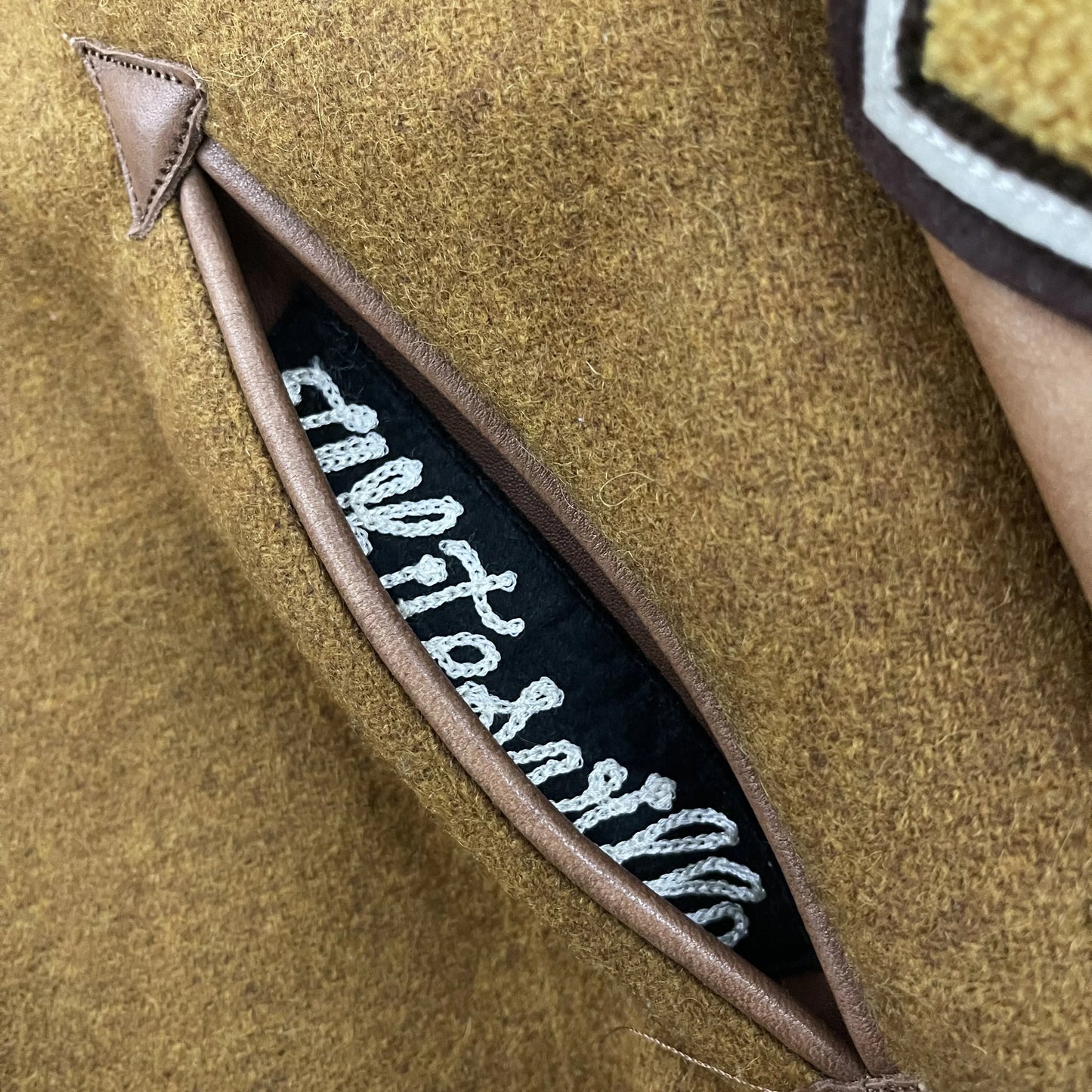 • Real leather sleeves and detailed embroidery.
