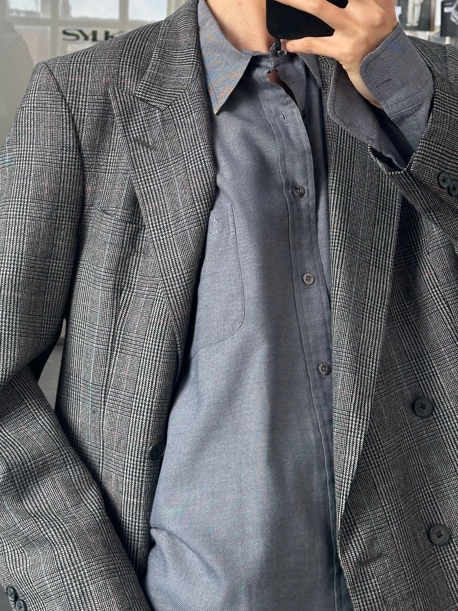 1990s YSL pour homme shirt in with micro check with chest pocket with tonal YSL monogram embroidery.