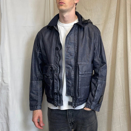 Fournisseur :ajpg_shopC.P. Company SS25 Oceana Blue Grey Rafia Mille Nylon Goggle Watchviewer Jacket