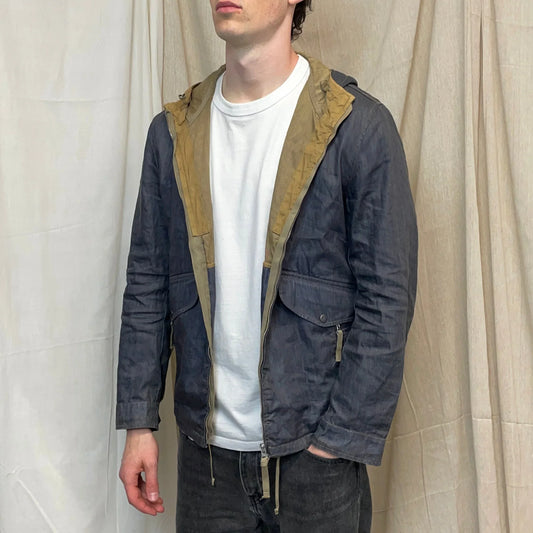 C.P. Company Blue Grey Lino Flax Zip-Through Hooded Jacket