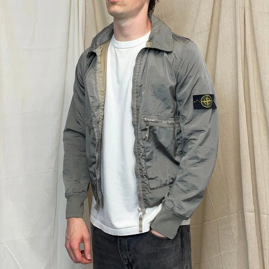 Fournisseur :ajpg_shopStone Island Silver Grey SS08 Nylon Metal Archivio Concealed Hood Lightweight Bomber Jacket