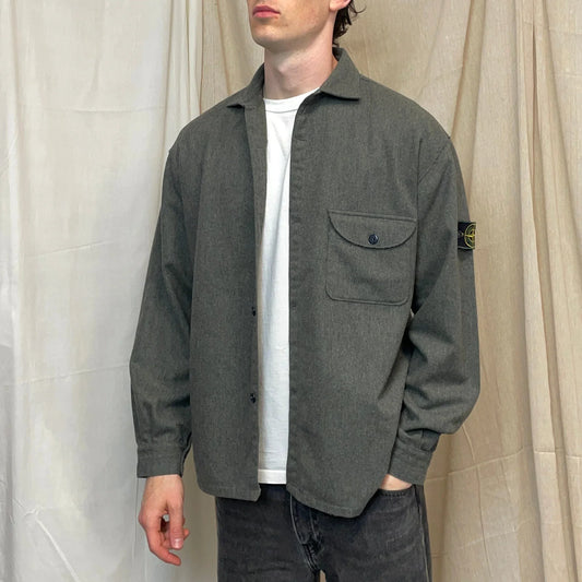 Stone Island Grey AW94 Wool Raw-Edge Finished Pocket Shirt