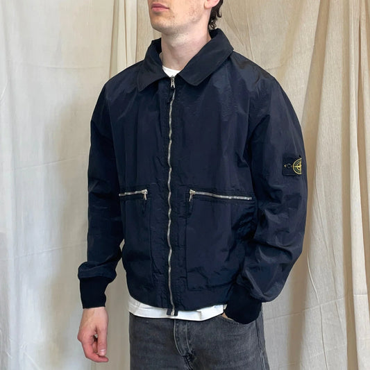 Fournisseur :ajpg_shopStone Island Navy SS08 Nylon Metal Archivio Concealed Hood Lightweight Bomber Jacket