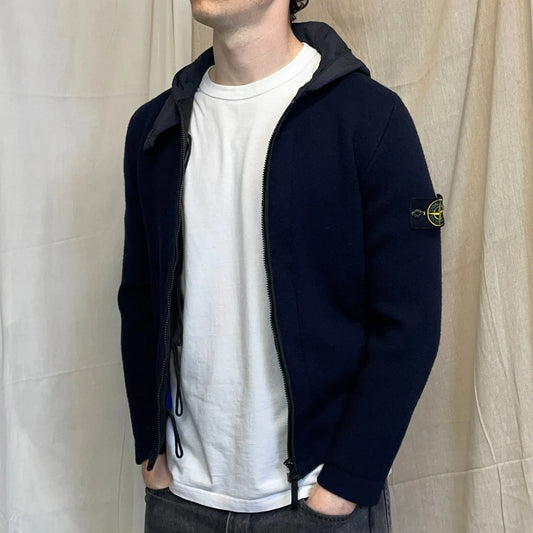 Stone Island Blue AW12 Contrast Hood Zip-Through Cardigan Jacket
