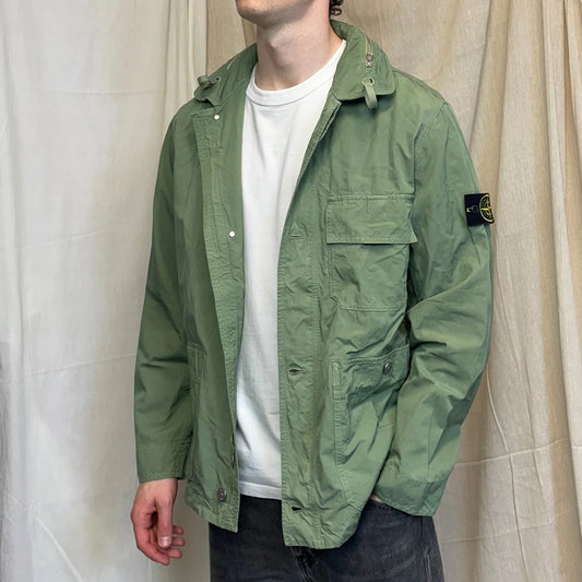 Fournisseur :ajpg_shopStone Island Green SS23 Lightweight Cupro Cotton Twill-TC Concealed Hood Chore Jacket