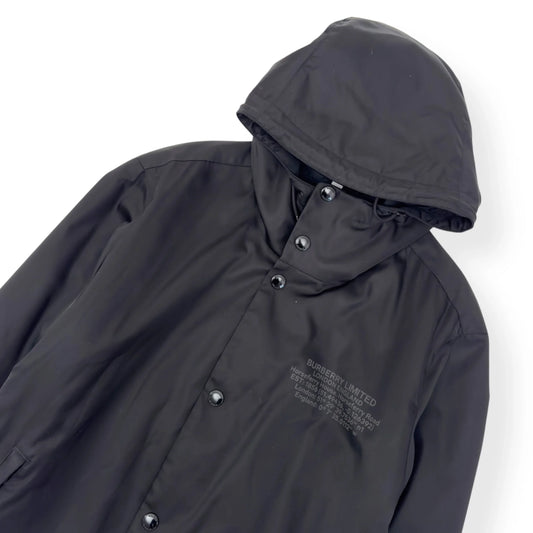 BURBERRY LOCATION-PRINT NYLON ECONYL PARKA JACKET BLACK M