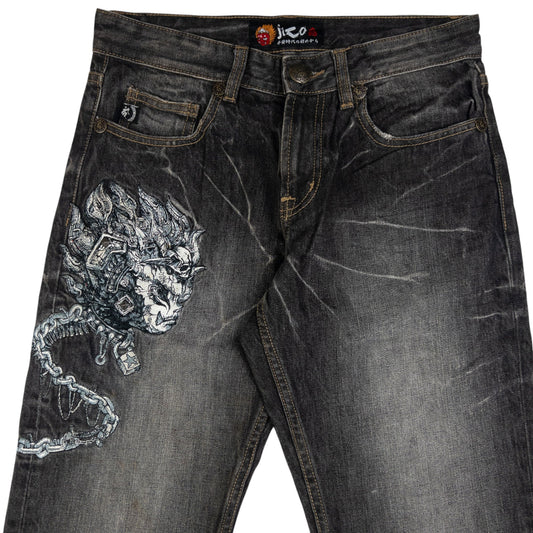 Vintage Jizo Bosatsu Embroidered Troll Skull Japanese Denim Jeans Size W30