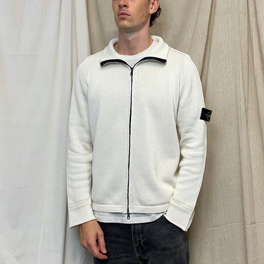 Stone Island White SS01 Two-Way Zip Knit Jumper