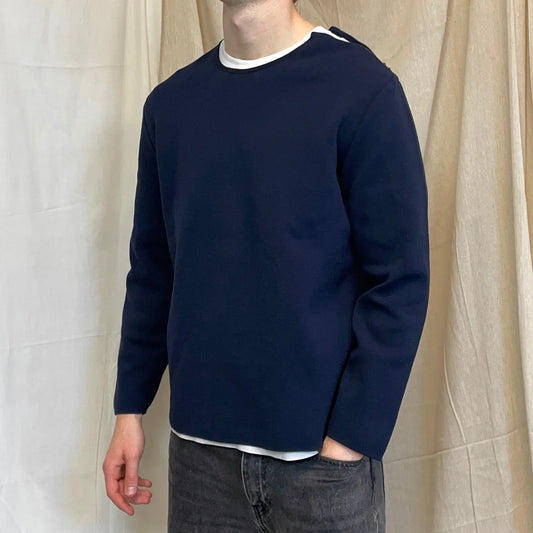 Prada Sport Navy SS00 Nylon Shoulder Zip Panel Crewneck Jumper